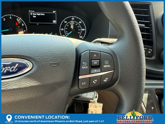 Heavy-Duty Trailer Tow Package (Frame Mounted Hitch Receiver and Tow/Haul Mode w/Trailering Wiring Provisions), Interior Upgrade Package (Front & Rear Vinyl Floor Covering and Illuminated Sun Visors), Order Code 101A, 2 Additional Keys (4 Total), 253-Degree Rear Door, 3.73 Axle Ratio, 4 Speakers, 4-Wheel Disc Brakes, 6 Cargo Tie-Down Hooks, ABS brakes, Air Conditioning, AM/FM radio, AM/FM Stereo, Auto High-beam Headlights, Brake assist, Dark Palazzo Gray Cloth Bucket Seats w/Armrests, Dark Palazzo Gray Vinyl Bucket Seats, Delay-off headlights, Driver door bin, Driver's Seat Mounted Armrest, Dual front impact airbags, Dual front side impact airbags, Electronic Stability Control, Exterior Parking Camera Rear, Front anti-roll bar, Front Bucket Seats, Front License Plate Bracket, Front Overhead Shelf, Front reading lights, Front wheel independent suspension, Fully automatic headlights, Illuminated entry, Large Center Console, Low tire pressure warning, Midship Extended Range Fuel Tank (31 Gallons), Occupant sensing airbag, Overhead airbag, Panic alarm, Passenger cancellable airbag, Passenger door bin, Power door mirrors, Power steering, Power windows, Radio: AM/FM Stereo w/SYNC 3, Remote keyless entry, Reverse Sensing System, Short-Arm Manual-Folding Power Adjust Mirrors, Speed control, Steering wheel mounted audio controls, Tachometer, Telescoping steering wheel, Tilt steering wheel, Traction control, Trailer Brake Controller (TBC), Variably intermittent wipers, Vinyl Front Bucket Seats, and Wheels: 16" Silver Steel w/Black Hubcap.
