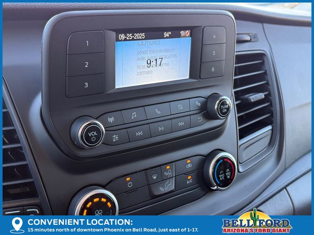 Heavy-Duty Trailer Tow Package (Frame Mounted Hitch Receiver and Tow/Haul Mode w/Trailering Wiring Provisions), Interior Upgrade Package (Front & Rear Vinyl Floor Covering and Illuminated Sun Visors), Order Code 101A, 2 Additional Keys (4 Total), 253-Degree Rear Door, 3.73 Axle Ratio, 4 Speakers, 4-Wheel Disc Brakes, 6 Cargo Tie-Down Hooks, ABS brakes, Air Conditioning, AM/FM radio, AM/FM Stereo, Auto High-beam Headlights, Brake assist, Dark Palazzo Gray Cloth Bucket Seats w/Armrests, Dark Palazzo Gray Vinyl Bucket Seats, Delay-off headlights, Driver door bin, Driver's Seat Mounted Armrest, Dual front impact airbags, Dual front side impact airbags, Electronic Stability Control, Exterior Parking Camera Rear, Front anti-roll bar, Front Bucket Seats, Front License Plate Bracket, Front reading lights, Front wheel independent suspension, Full Rear Compartment Lighting, Fully automatic headlights, Illuminated entry, Low tire pressure warning, Midship Extended Range Fuel Tank (31 Gallons), Occupant sensing airbag, Overhead airbag, Panic alarm, Passenger cancellable airbag, Passenger door bin, Power door mirrors, Power steering, Power windows, Radio: AM/FM Stereo w/SYNC 3, Remote keyless entry, Reverse Sensing System, Short-Arm Manual-Folding Power Adjust Mirrors, Speed control, Steering wheel mounted audio controls, Tachometer, Telescoping steering wheel, Tilt steering wheel, Traction control, Variably intermittent wipers, Vinyl Front Bucket Seats, and Wheels: 16" Silver Steel w/Black Hubcap.