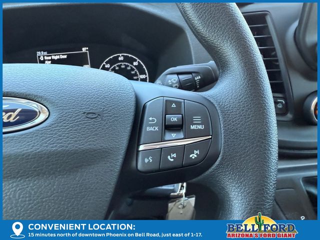 Heavy-Duty Trailer Tow Package (Frame Mounted Hitch Receiver and Tow/Haul Mode w/Trailering Wiring Provisions), Interior Upgrade Package (Front & Rear Vinyl Floor Covering and Illuminated Sun Visors), Order Code 101A, 2 Additional Keys (4 Total), 253-Degree Rear Door, 3.73 Axle Ratio, 4 Speakers, 4-Wheel Disc Brakes, ABS brakes, Air Conditioning, AM/FM radio, AM/FM Stereo, Auto High-beam Headlights, Brake assist, Dark Palazzo Gray Cloth Bucket Seats w/Armrests, Dark Palazzo Gray Vinyl Bucket Seats, Delay-off headlights, Driver door bin, Driver's Seat Mounted Armrest, Dual front impact airbags, Dual front side impact airbags, Electronic Stability Control, Exterior Parking Camera Rear, Front anti-roll bar, Front Bucket Seats, Front License Plate Bracket, Front Overhead Shelf, Front reading lights, Front wheel independent suspension, Full Rear Compartment Lighting, Fully automatic headlights, Illuminated entry, Low tire pressure warning, Occupant sensing airbag, Overhead airbag, Panic alarm, Passenger cancellable airbag, Passenger door bin, Power door mirrors, Power steering, Power windows, Radio: AM/FM Stereo w/SYNC 3, Remote keyless entry, Reverse Sensing System, Short-Arm Manual-Folding Power Adjust Mirrors, Speed control, Steering wheel mounted audio controls, Tachometer, Telescoping steering wheel, Tilt steering wheel, Traction control, Variably intermittent wipers, Vinyl Front Bucket Seats, and Wheels: 16" Silver Steel w/Black Hubcap.