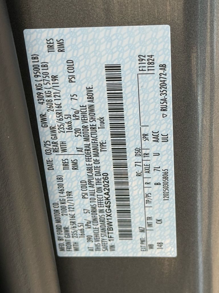 - VIN : 1FTBW1XG4SKA20260
