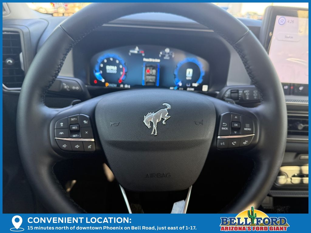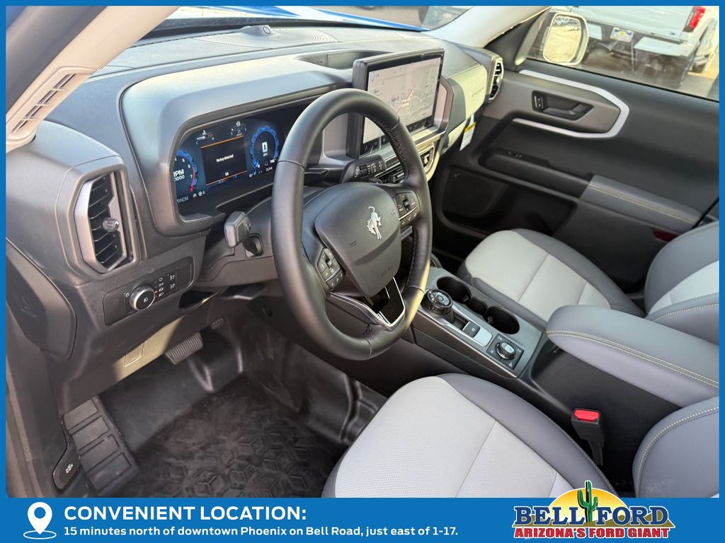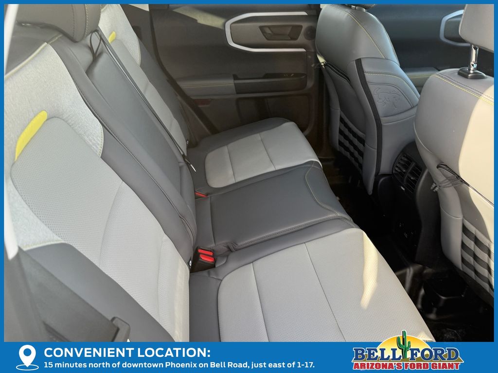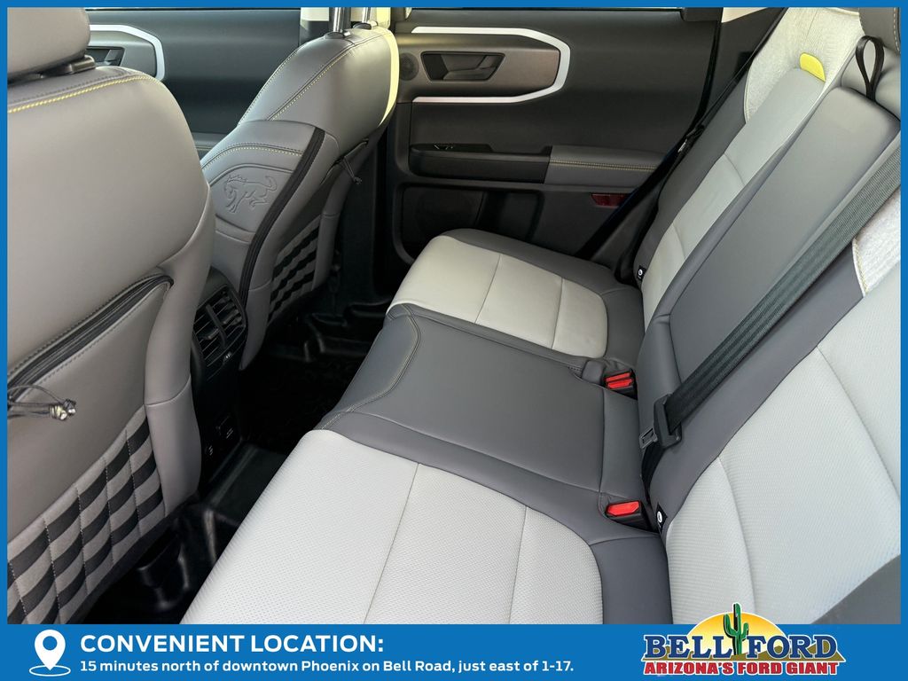 This Ford Bronco Sport is equipped with the following options: Badlands Tech Package (Connected Navigation (1-Year Included), Noise Reduction Module, and Radio: HD w/B&O Sound System by Bang & Olufsen), Equipment Group 400A Standard Package (AM/FM Stereo, Leather-Trimmed Heated Front Sport Contour Bucket Seats, SiriusXM with 360L, SYNC 4 with Enhanced Voice Recognition, and Wheels: 17" Matte Black-Painted Aluminum), Ford Connectivity Package (1-Year Included), Internet access capable: 5G Modem - Ford Connectivity Package, Sasquatch Badlands Package (2 Rear D-Ring Recovery Hooks, 850W Engine Cooling Fan, Auxiliary Switches and Wiring, High Clearance Fender Flares, HOSS 3.0 Off-Road Suspension, Rear Black Bumpers with Steel Plates, and Wheels: 17" Ebony Black-Painted Aluminum), 4-Wheel Disc Brakes, 6 Speakers, ABS brakes, Air Conditioning, Alloy wheels, AM/FM radio: SiriusXM with 360L, Apple CarPlay/Android Auto, Auto High-beam Headlights, Auto-dimming Rear-View mirror, Automatic temperature control, Brake assist, Compass, Delay-off headlights, Driver door bin, Driver vanity mirror, Dual front impact airbags, Dual front side impact airbags, Electronic Stability Control, Emergency communication system: SYNC 4 911 Assist, Exterior Parking Camera Rear, Four wheel independent suspension, Front anti-roll bar, Front Bucket Seats, Front Center Armrest, Front fog lights, Front reading lights, Fully automatic headlights, Heated door mirrors, Heated front seats, Heated steering wheel, Illuminated entry, Knee airbag, Low tire pressure warning, Memory seat, Occupant sensing airbag, Outside temperature display, Overhead airbag, Overhead console, Panic alarm, Passenger door bin, Passenger vanity mirror, Power door mirrors, Power driver seat, Power passenger seat, Power steering, Power windows, Radio data system, Rear anti-roll bar, Rear reading lights, Rear seat center armrest, Rear window defroster, Rear window wiper, Remote keyless entry, Security system, Speed control, Speed-sensing steering, Speed-Sensitive Wipers, Split folding rear seat, Steering wheel mounted audio controls, Tachometer, Telescoping steering wheel, Tilt steering wheel, Traction control, Trip computer, and Variably intermittent wipers.