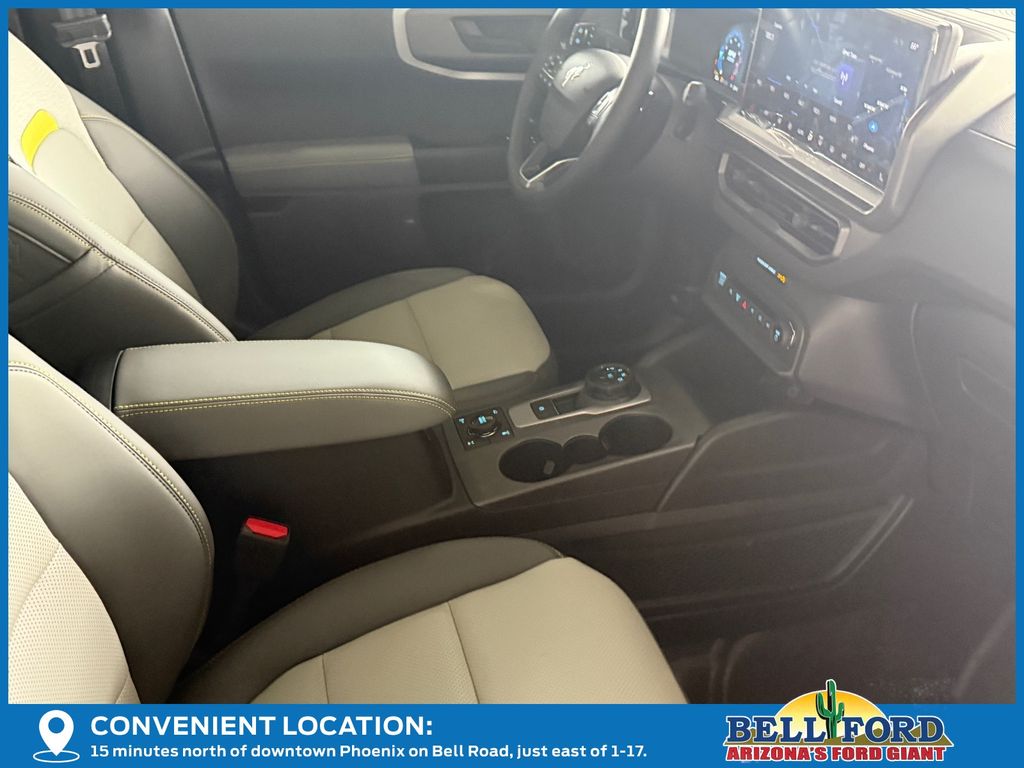 This Ford Bronco Sport is equipped with the following options: Badlands Tech Package (Connected Navigation (1-Year Included), Noise Reduction Module, and Radio: HD w/B&O Sound System by Bang & Olufsen), Equipment Group 400A Standard Package (AM/FM Stereo, Leather-Trimmed Heated Front Sport Contour Bucket Seats, SiriusXM with 360L, SYNC 4 with Enhanced Voice Recognition, and Wheels: 17" Matte Black-Painted Aluminum), Ford Connectivity Package (1-Year Included), Internet access capable: 5G Modem - Ford Connectivity Package, Sasquatch Badlands Package (2 Rear D-Ring Recovery Hooks, 850W Engine Cooling Fan, Auxiliary Switches and Wiring, High Clearance Fender Flares, HOSS 3.0 Off-Road Suspension, Rear Black Bumpers with Steel Plates, and Wheels: 17" Ebony Black-Painted Aluminum), 4-Wheel Disc Brakes, 6 Speakers, ABS brakes, Air Conditioning, Alloy wheels, AM/FM radio: SiriusXM with 360L, Apple CarPlay/Android Auto, Auto High-beam Headlights, Auto-dimming Rear-View mirror, Automatic temperature control, Brake assist, Compass, Delay-off headlights, Driver door bin, Driver vanity mirror, Dual front impact airbags, Dual front side impact airbags, Electronic Stability Control, Emergency communication system: SYNC 4 911 Assist, Exterior Parking Camera Rear, Four wheel independent suspension, Front anti-roll bar, Front Bucket Seats, Front Center Armrest, Front fog lights, Front reading lights, Fully automatic headlights, Heated door mirrors, Heated front seats, Heated steering wheel, Illuminated entry, Knee airbag, Low tire pressure warning, Memory seat, Occupant sensing airbag, Outside temperature display, Overhead airbag, Overhead console, Panic alarm, Passenger door bin, Passenger vanity mirror, Power door mirrors, Power driver seat, Power passenger seat, Power steering, Power windows, Radio data system, Rear anti-roll bar, Rear reading lights, Rear seat center armrest, Rear window defroster, Rear window wiper, Remote keyless entry, Security system, Speed control, Speed-sensing steering, Speed-Sensitive Wipers, Split folding rear seat, Steering wheel mounted audio controls, Tachometer, Telescoping steering wheel, Tilt steering wheel, Traction control, Trip computer, and Variably intermittent wipers.