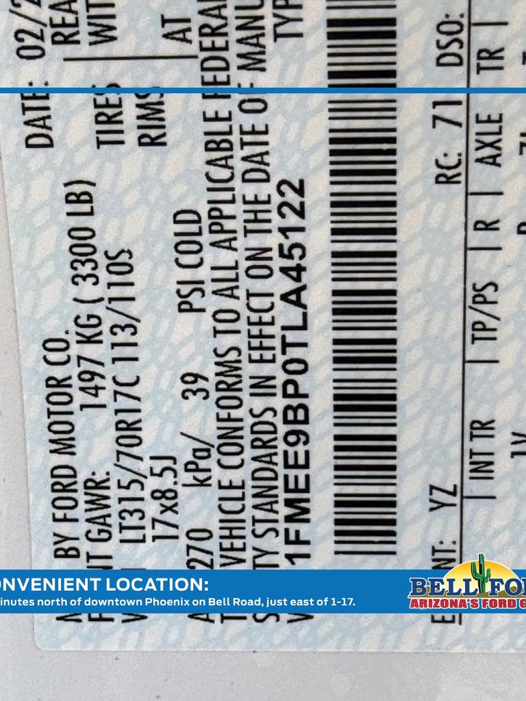 - VIN : 1FMEE9BP0TLA45122