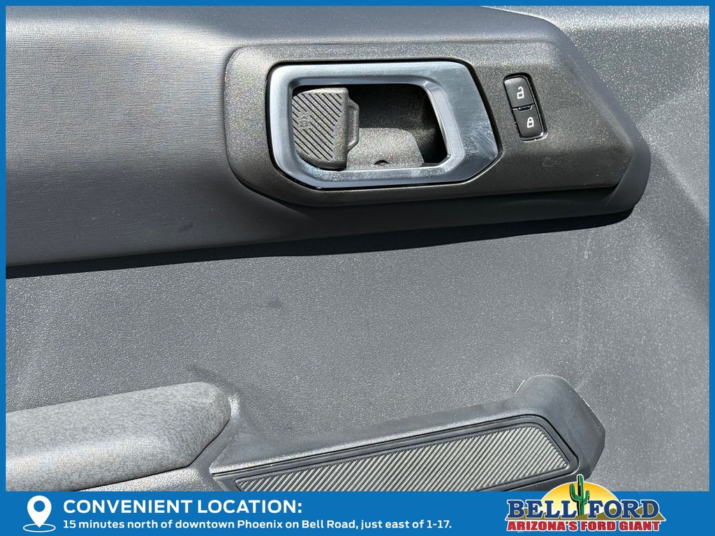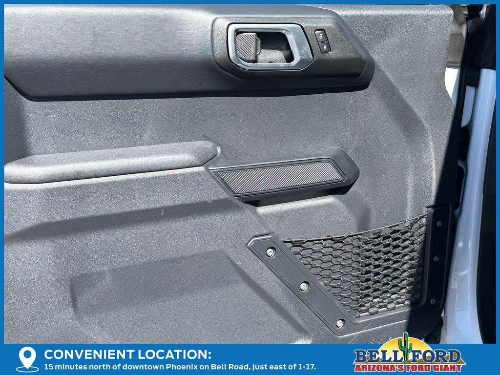 This Ford Bronco is equipped with the following options: Black Appearance Package (Black Molded-in-Color Door Handles, Black Molded-in-Color Sideview Mirror Caps, and Black-Painted Molded-in-Color Grille), Equipment Group 334A Lux Package (2-Door Intelligent Access with Lock/Unlock, 360-Degree Camera, Adaptive Cruise Control, Ambient Footwell Lighting, Connected Navigation, Driver and Front Passenger Illuminated Sliding Visor Vanity Mirrors, Dual Smart Charging USB Ports, Dual-Zone Electronic Automatic Temperature Control, Evasive Steering Assist, Front Parking Sensors, Front Row Heated Seats, Heated Steering Wheel, Information on Demand Panel, Marine Grade Vinyl Heated Bucket Seats, Pro Power Onboard - 400W, Rear Parking Sensors, Sideview Mirrors, and Wheels: 17" Carbonized Gray-Painted Aluminum), Ford Connectivity Package (1-Year Included), Sasquatch Package (Front Stabilizer Disconnect, High Clearance Suspension, Position-Sensitive Bilstein Shock Absorbers, and Wheels: 17" Matte Black Alloy), Trailer Tow Package, 4-Wheel Disc Brakes, 7 Speakers, ABS brakes, Air Conditioning, Alloy wheels, AM/FM radio: SiriusXM with 360L, AM/FM Stereo, Auto High-Beam Headlamps, Auto High-beam Headlights, Auto-dimming Rear-View mirror, BLIS Blind Spot Information System, Brake assist, Compass, Delay-off headlights, Driver door bin, Driver vanity mirror, Dual front impact airbags, Dual front side impact airbags, Electronic Stability Control, Emergency communication system: 911 Assist, Exterior Parking Camera Rear, Front anti-roll bar, Front Bucket Seats, Front Center Armrest, Front fog lights, Front reading lights, Front wheel independent suspension, Fully automatic headlights, Hard Top Sound Deadening Headliner, Heated door mirrors, Heated front seats, Illuminated entry, Integrated roll-over protection, Lane-Keeping System, Leather Shift Knob, Low tire pressure warning, Occupant sensing airbag, Outside temperature display, Overhead airbag, Overhead console, Panic alarm, Passenger door bin, Passenger vanity mirror, Power door mirrors, Power steering, Power windows, Pre-Collision Assist with Automatic Emergency Braking, Radio data system, Rear-View Camera, Rear-Window Defroster and Washer, Remote keyless entry, Security system, Shadow Black Painted Hard Top, SiriusXM with 360L, Speed control, Split folding rear seat, Steering wheel mounted audio controls, SYNC 4, Tachometer, Telescoping steering wheel, Tilt steering wheel, Traction control, Trip computer, Variably intermittent wipers, and Voltmeter.