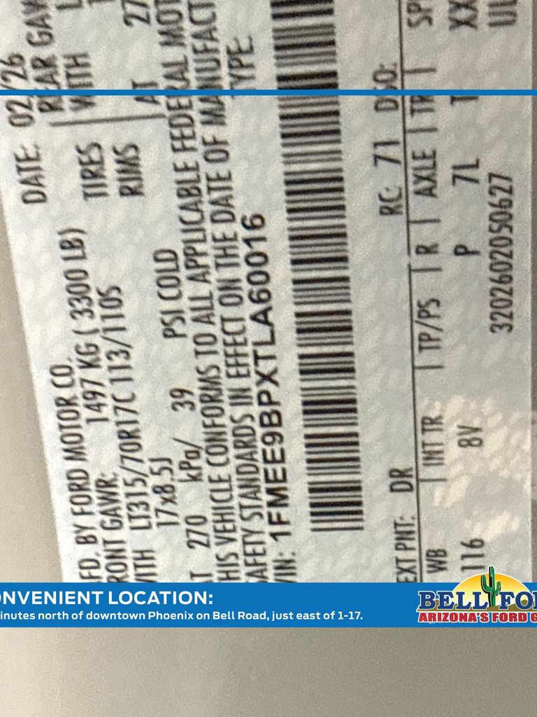 - VIN : 1FMEE9BPXTLA60016