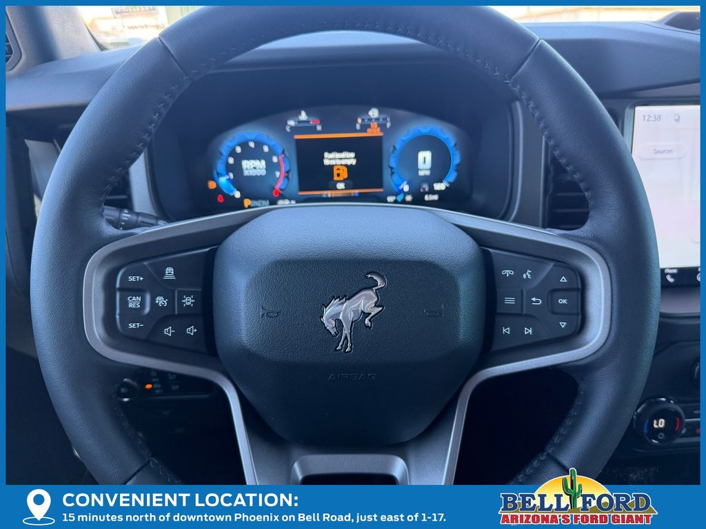 This Ford Bronco is equipped with the following options: Equipment Group 334A Lux Package (2-Door Intelligent Access with Lock/Unlock, 360-Degree Camera, Adaptive Cruise Control, Ambient Footwell Lighting, Connected Navigation, Driver and Front Passenger Illuminated Sliding Visor Vanity Mirrors, Dual Smart Charging USB Ports, Dual-Zone Electronic Automatic Temperature Control, Evasive Steering Assist, Front Parking Sensors, Front Row Heated Seats, Heated Steering Wheel, Information on Demand Panel, Marine Grade Vinyl Heated Bucket Seats, Pro Power Onboard - 400W, Rear Parking Sensors, Sideview Mirrors, and Wheels: 17" Carbonized Gray-Painted Aluminum), Ford Connectivity Package (1-Year Included), Sasquatch Package (Front Stabilizer Disconnect, High Clearance Suspension, and Position-Sensitive Bilstein Shock Absorbers), 4-Wheel Disc Brakes, 7 Speakers, ABS brakes, Air Conditioning, Alloy wheels, AM/FM radio: SiriusXM with 360L, AM/FM Stereo, Auto High-Beam Headlamps, Auto High-beam Headlights, Auto-dimming Rear-View mirror, BLIS Blind Spot Information System, Brake assist, Carbonized Gray Molded-in-Color Hard Top, Compass, Delay-off headlights, Driver door bin, Driver vanity mirror, Dual front impact airbags, Dual front side impact airbags, Electronic Stability Control, Emergency communication system: 911 Assist, Exterior Parking Camera Rear, Front anti-roll bar, Front Bucket Seats, Front Center Armrest, Front fog lights, Front reading lights, Front wheel independent suspension, Fully automatic headlights, Hard Top Sound Deadening Headliner, Heated door mirrors, Heated front seats, Illuminated entry, Integrated roll-over protection, Lane-Keeping System, Leather Shift Knob, Low tire pressure warning, Occupant sensing airbag, Outside temperature display, Overhead airbag, Overhead console, Panic alarm, Passenger door bin, Passenger vanity mirror, Power door mirrors, Power steering, Power windows, Pre-Collision Assist with Automatic Emergency Braking, Radio data system, Rear-View Camera, Rear-Window Defroster and Washer, Remote keyless entry, Security system, SiriusXM with 360L, Speed control, Split folding rear seat, Steering wheel mounted audio controls, SYNC 4, Tachometer, Telescoping steering wheel, Tilt steering wheel, Traction control, Trip computer, Variably intermittent wipers, Voltmeter, and Wheels: 17" Black High Gloss-Painted Aluminum. Price includes: $750 - Retail Customer Cash. Exp. 04/30/2026