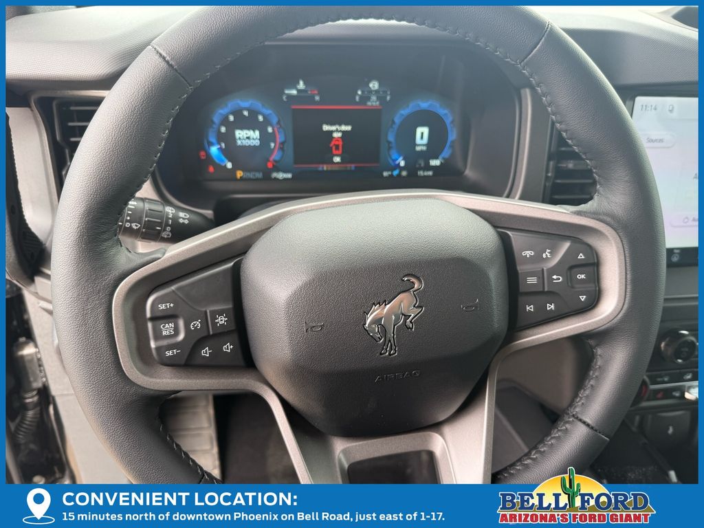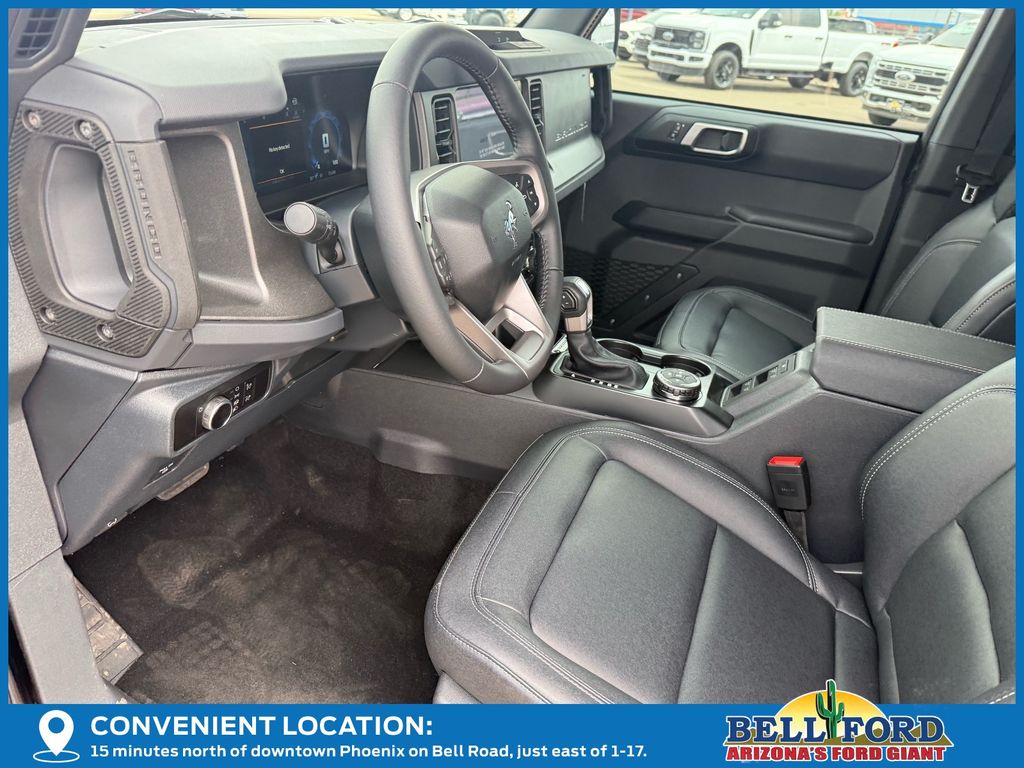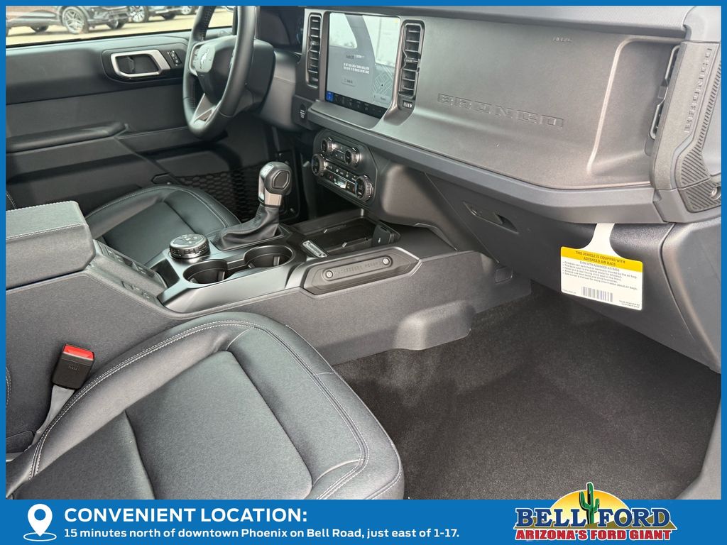 This Ford Bronco is equipped with the following options: Equipment Group 222A Mid Package (2-Door Intelligent Access with Lock/Unlock, AM/FM Stereo, Ambient Footwell Lighting, Cloth Bucket Seats, Connected Navigation, Driver and Front Passenger Illuminated Sliding Visor Vanity Mirrors, Dual Smart Charging USB Ports, Dual-Zone Electronic Automatic Temperature Control, Front Row Heated Seats, Pro Power Onboard - 400W, Rear Parking Sensors, SiriusXM with 360L, SYNC 4, and Wheels: 17" Carbonized Gray-Painted Aluminum), Ford Connectivity Package (1-Year Included), 4-Wheel Disc Brakes, 4.46 Axle Ratio, 7 Speakers, ABS brakes, Air Conditioning, Alloy wheels, AM/FM radio: SiriusXM with 360L, Auto High-Beam Headlamps, Auto High-beam Headlights, BLIS Blind Spot Information System, Brake assist, Carbonized Gray Molded-in-Color Hard Top, Compass, Delay-off headlights, Driver door bin, Driver vanity mirror, Dual front impact airbags, Dual front side impact airbags, Electronic Stability Control, Emergency communication system: 911 Assist, Exterior Parking Camera Rear, Front anti-roll bar, Front Bucket Seats, Front Center Armrest, Front reading lights, Front wheel independent suspension, Fully automatic headlights, Hard Top Sound Deadening Headliner, Heated door mirrors, Illuminated entry, Integrated roll-over protection, Lane-Keeping System, Low tire pressure warning, Occupant sensing airbag, Outside temperature display, Overhead airbag, Overhead console, Panic alarm, Passenger door bin, Passenger vanity mirror, Power door mirrors, Power steering, Power windows, Pre-Collision Assist with Automatic Emergency Braking, Radio data system, Rear-View Camera, Rear-Window Defroster and Washer, Remote keyless entry, Security system, Speed control, Split folding rear seat, Steering wheel mounted audio controls, Tachometer, Telescoping steering wheel, Tilt steering wheel, Traction control, Trip computer, and Variably intermittent wipers. Price includes: $750 - Retail Customer Cash. Exp. 04/30/2026