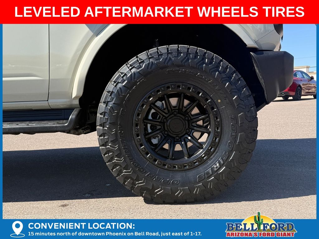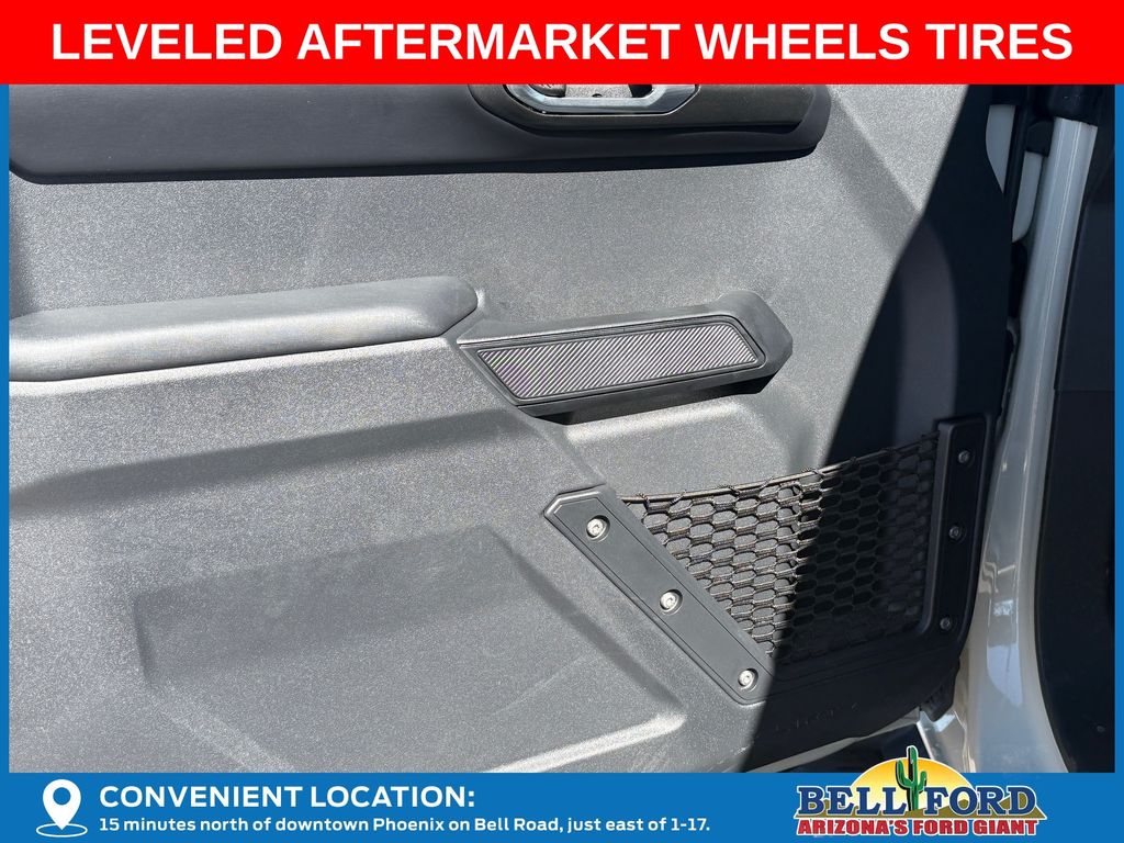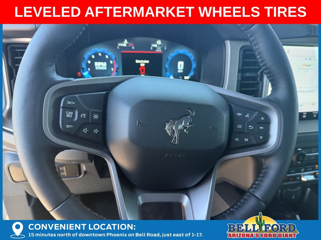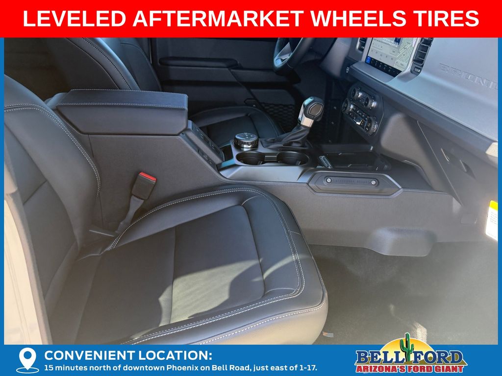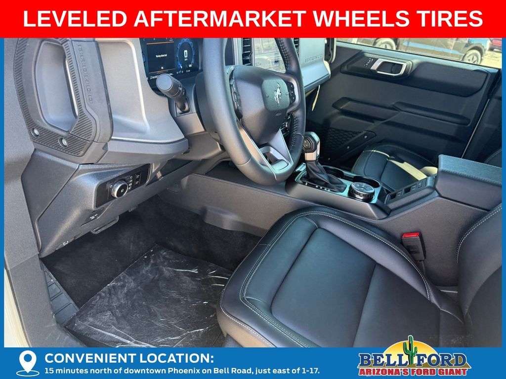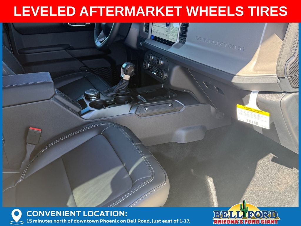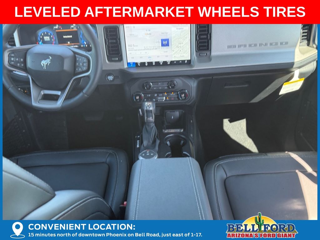 This Ford Bronco is equipped with the following options: Equipment Group 312A Mid Package (18" Bright Machined Aluminum Wheels, 3.73 Axle Ratio, AM/FM Stereo, Connected Navigation, Heated Leather-Trimmed/Vinyl Bucket Seats, SiriusXM with 360L, and SYNC 4), Ford Connectivity Package (1-Year Included), 4-Wheel Disc Brakes, 7 Speakers, ABS brakes, Air Conditioning, Alloy wheels, AM/FM radio: SiriusXM with 360L, Auto High-beam Headlights, Auto-dimming Rear-View mirror, Automatic temperature control, Brake assist, Compass, Delay-off headlights, Driver door bin, Driver vanity mirror, Dual front impact airbags, Dual front side impact airbags, Electronic Stability Control, Emergency communication system: 911 Assist, Exterior Parking Camera Rear, Front anti-roll bar, Front Bucket Seats, Front Center Armrest, Front dual zone A/C, Front fog lights, Front reading lights, Front wheel independent suspension, Fully automatic headlights, Hard Top Sound Deadening Headliner, Heated door mirrors, Heated front seats, Heated steering wheel, Illuminated entry, Integrated roll-over protection, Leather Shift Knob, Low tire pressure warning, Navigation system: Connected Navigation, Occupant sensing airbag, Outside temperature display, Overhead airbag, Overhead console, Panic alarm, Passenger door bin, Passenger vanity mirror, Power door mirrors, Power driver seat, Power passenger seat, Power steering, Power windows, Radio data system, Rear seat center armrest, Rear-Window Defroster and Washer, Remote keyless entry, Security system, Shadow Black-Painted Hard Top, Speed control, Split folding rear seat, Steering wheel mounted audio controls, Tachometer, Telescoping steering wheel, Tilt steering wheel, Traction control, Trip computer, Variably intermittent wipers, and Voltmeter. Price includes: $750 - Retail Customer Cash. Exp. 04/30/2026 Price includes dealer added accessories totaling $9,260.