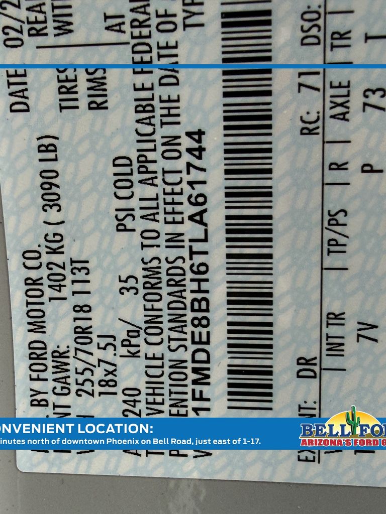 - VIN : 1FMDE8BH6TLA61744