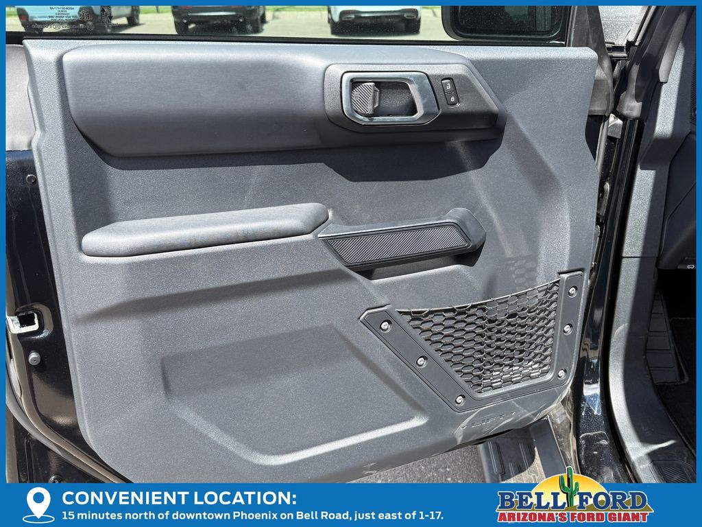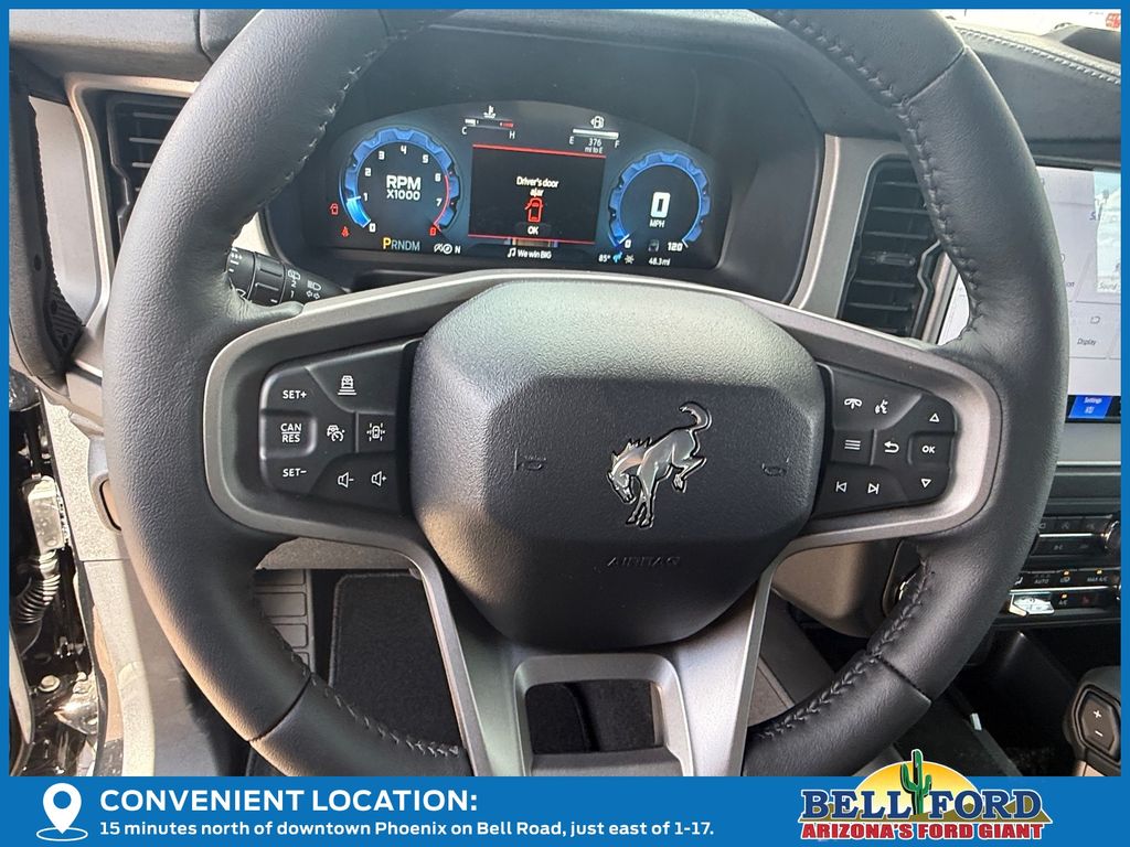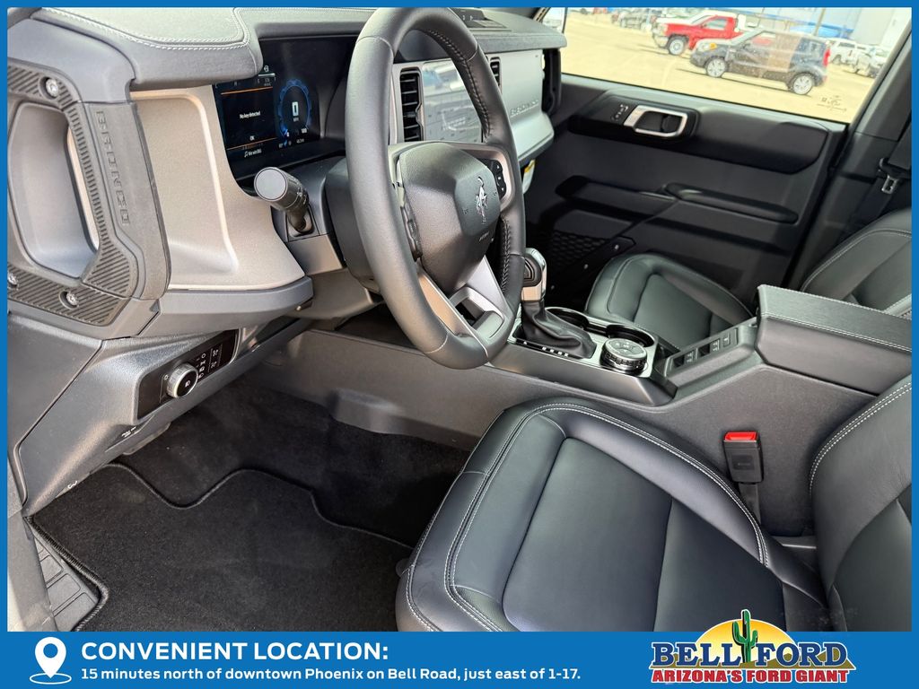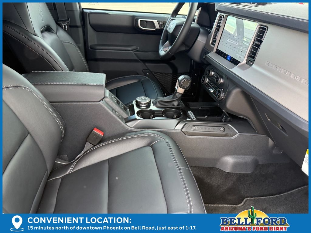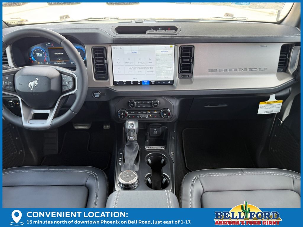 This Ford Bronco is equipped with the following options: Equipment Group 314A Lux Package (18" Bright Machined Aluminum Wheels, 3.73 Axle Ratio, 360-Degree Camera, Adaptive Cruise Control, Evasive Steering Assist, Front Parking Sensors, Heated Leather-Trimmed/Vinyl Bucket Seats, Information on Demand Panel, and Sideview Mirrors), Ford Connectivity Package (1-Year Included), 4-Wheel Disc Brakes, 7 Speakers, ABS brakes, Air Conditioning, Alloy wheels, AM/FM radio: SiriusXM with 360L, AM/FM Stereo, Auto High-beam Headlights, Auto-dimming Rear-View mirror, Automatic temperature control, Brake assist, Carbonized Gray Molded-in-Color Hard Top, Compass, Connected Navigation, Delay-off headlights, Driver door bin, Driver vanity mirror, Dual front impact airbags, Dual front side impact airbags, Electronic Stability Control, Emergency communication system: 911 Assist, Exterior Parking Camera Rear, Front anti-roll bar, Front Bucket Seats, Front Center Armrest, Front dual zone A/C, Front fog lights, Front reading lights, Front wheel independent suspension, Fully automatic headlights, Hard Top Sound Deadening Headliner, Heated door mirrors, Heated front seats, Heated steering wheel, Illuminated entry, Integrated roll-over protection, Leather Shift Knob, Low tire pressure warning, Navigation system: Connected Navigation, Occupant sensing airbag, Outside temperature display, Overhead airbag, Overhead console, Panic alarm, Passenger door bin, Passenger vanity mirror, Power door mirrors, Power driver seat, Power passenger seat, Power steering, Power windows, Radio data system, Rear seat center armrest, Rear-Window Defroster and Washer, Remote keyless entry, Security system, SiriusXM with 360L, Speed control, Split folding rear seat, Steering wheel mounted audio controls, SYNC 4, Tachometer, Telescoping steering wheel, Tilt steering wheel, Traction control, Trip computer, Variably intermittent wipers, and Voltmeter. Price includes: $750 - Retail Customer Cash. Exp. 04/30/2026