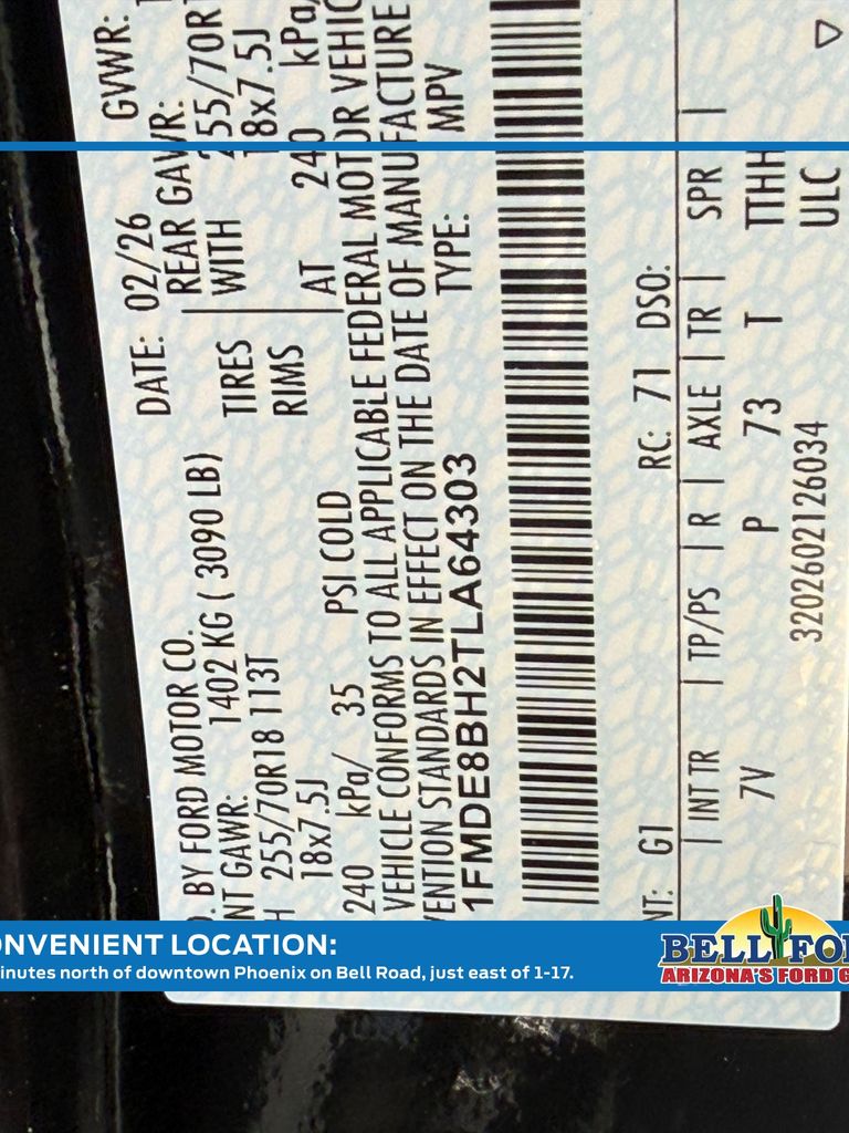 - VIN : 1FMDE8BH2TLA64303