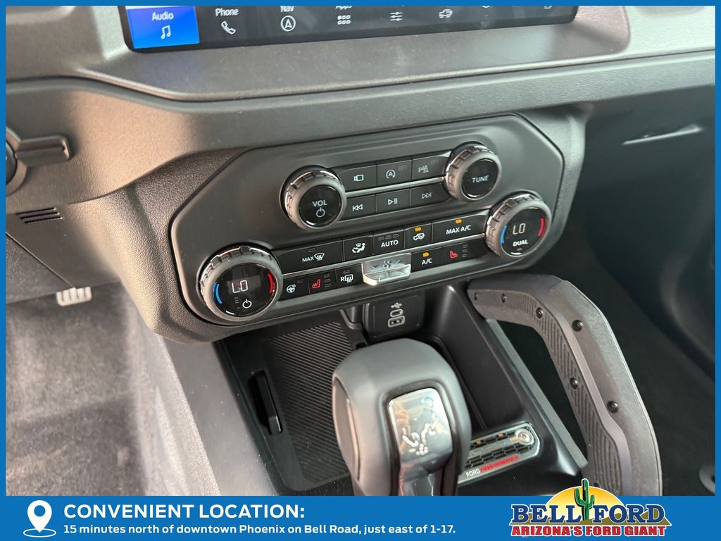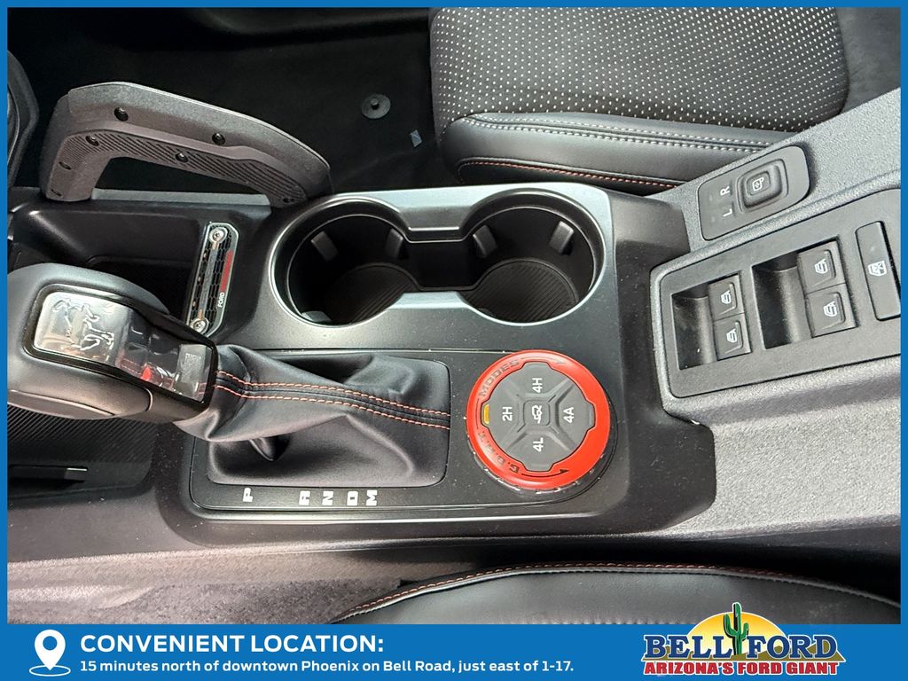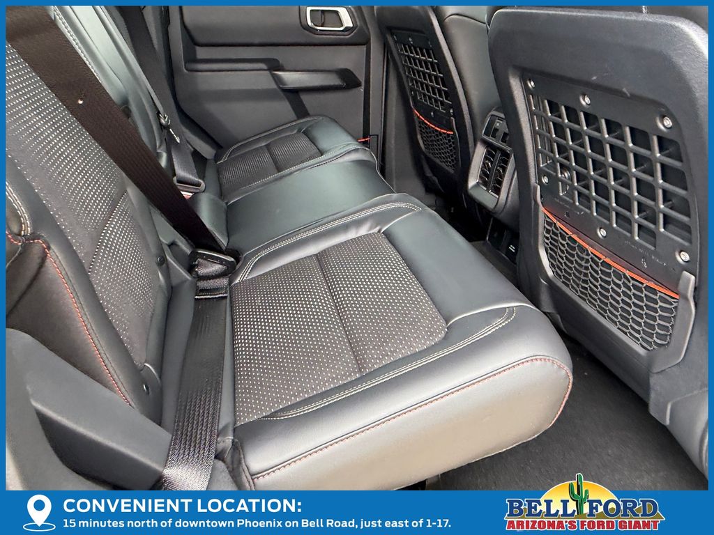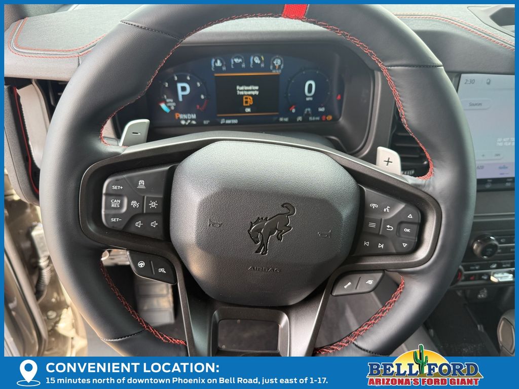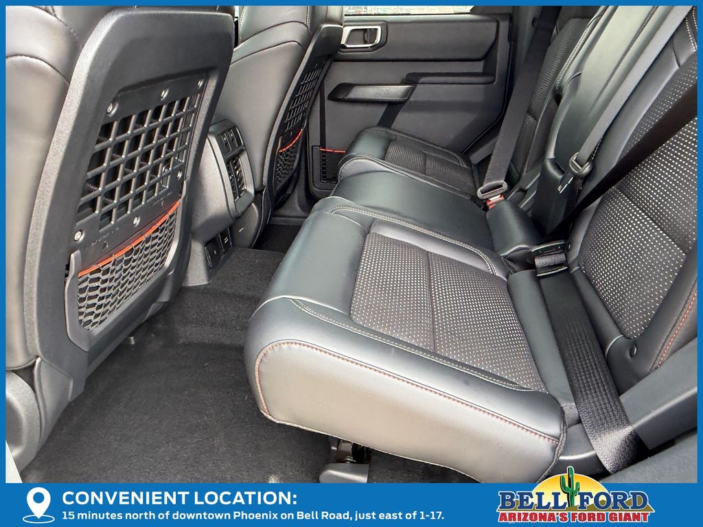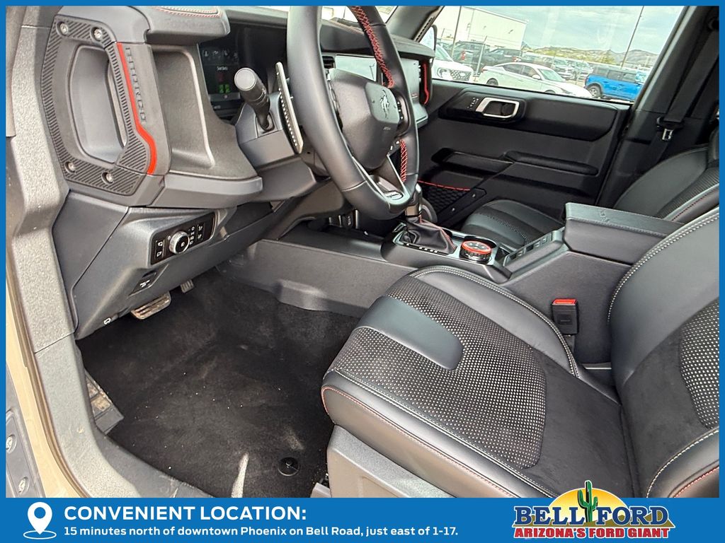 This Ford Bronco is equipped with the following options: Equipment Group 374A Lux Package (Marine Grade Vinyl Bucket Seats and Wheels: 17" Black High Gloss-Painted Aluminum), Ford Connectivity Package (1-Year Included), 12 Speakers, 4-Wheel Disc Brakes, ABS brakes, Air Conditioning, Alloy wheels, AM/FM radio: SiriusXM with 360L, Auto High-beam Headlights, Auto-dimming Rear-View mirror, Automatic temperature control, Brake assist, Compass, Connected Navigation, Convertible HardTop, Convertible roof lining, Delay-off headlights, Driver door bin, Driver vanity mirror, Dual front impact airbags, Dual front side impact airbags, Electronic Stability Control, Emergency communication system: 911 Assist, Exterior Parking Camera Rear, Front anti-roll bar, Front Bucket Seats, Front Center Armrest, Front dual zone A/C, Front fog lights, Front reading lights, Front wheel independent suspension, Fully automatic headlights, Glass rear window, Hard Top Sound Deadening Headliner, Heated door mirrors, Heated front seats, Heated steering wheel, Illuminated entry, Integrated roll-over protection, Leather Shift Knob, Leather-Trimmed/Vinyl Bucket Seats, Low tire pressure warning, Navigation system: Connected Navigation, Occupant sensing airbag, Outside temperature display, Overhead airbag, Overhead console, Panic alarm, Passenger door bin, Passenger vanity mirror, Power door mirrors, Power steering, Power windows, Radio data system, Rear anti-roll bar, Rear seat center armrest, Rear window defroster, Rear window wiper, Rear-Window Defroster and Washer, Remote keyless entry, Security system, Shadow Black Painted Hard Top, SiriusXM with 360L, Speed control, Split folding rear seat, Steering wheel mounted audio controls, SYNC 4, Tachometer, Telescoping steering wheel, Tilt steering wheel, Traction control, Trip computer, Turn signal indicator mirrors, Variably intermittent wipers, and Voltmeter.