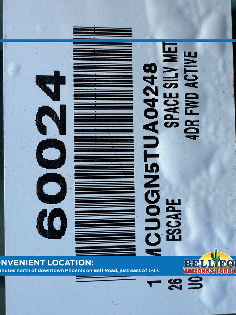 This Ford Escape is equipped with the following options: Equipment Group 200A (3.81 Axle Ratio, 4-Way Manual Front Passenger Seat, 6-Way Manual Driver Seat, Ford App, Radio: AM/FM Stereo with SiriusXM 360L, SYNC 4, Unique Cloth Front Bucket Seats, and Wheels: 17" Shadow Silver-Painted Aluminum), Tech Pack #1 (Adaptive Cruise Control with Stop-and-Go, Connected Navigation (1-Year Included), Digital Rear View Camera, Evasive Steering Assist, Ford Co-Pilot360 Assist+, Intersection Assist, Predictive Speed Assist, Rear Parking Sensor, and SYNC 4 with Enhanced Voice Recognition), 4-Wheel Disc Brakes, 6 Speakers, ABS brakes, Air Conditioning, Alloy wheels, AM/FM radio: SiriusXM 360L, Auto High-beam Headlights, Automatic temperature control, Brake assist, Bumpers: body-color, Compass, Delay-off headlights, Driver door bin, Driver vanity mirror, Dual front impact airbags, Dual front side impact airbags, Electronic Stability Control, Emergency communication system: SYNC 4 911 Assist, Four wheel independent suspension, Front anti-roll bar, Front Bucket Seats, Front Center Armrest, Front dual zone A/C, Front reading lights, Fully automatic headlights, Illuminated entry, Knee airbag, Low tire pressure warning, Occupant sensing airbag, Outside temperature display, Overhead airbag, Overhead console, Panic alarm, Passenger door bin, Passenger vanity mirror, Power door mirrors, Power steering, Power windows, Radio data system, Rear anti-roll bar, Rear reading lights, Rear seat center armrest, Rear window defroster, Rear window wiper, Remote keyless entry, Speed control, Speed-sensing steering, Speed-Sensitive Wipers, Split folding rear seat, Spoiler, Steering wheel mounted audio controls, Tachometer, Telescoping steering wheel, Tilt steering wheel, Traction control, Trip computer, and Variably intermittent wipers. Price includes: $1500 - Retail Customer Cash. Exp. 03/31/2026 $2000 - Bonus Customer Cash. Exp. 03/31/2026