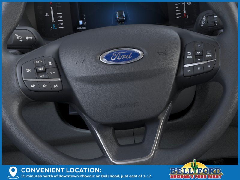 Equipment Group 200A (3.81 Axle Ratio, 4-Way Manual Front Passenger Seat, 6-Way Manual Driver Seat, Ford App, Radio: AM/FM Stereo with SiriusXM 360L, SYNC 4, Unique Cloth Front Bucket Seats, and Wheels: 17" Shadow Silver-Painted Aluminum), Tech Pack #1 (Adaptive Cruise Control with Stop-and-Go, Connected Navigation (1-Year Included), Digital Rear View Camera, Evasive Steering Assist, Ford Co-Pilot360 Assist+, Intersection Assist, Predictive Speed Assist, Rear Parking Sensor, and SYNC 4 with Enhanced Voice Recognition), 4-Wheel Disc Brakes, 6 Speakers, ABS brakes, Air Conditioning, Alloy wheels, AM/FM radio: SiriusXM 360L, Auto High-beam Headlights, Automatic temperature control, Brake assist, Bumpers: body-color, Compass, Delay-off headlights, Driver door bin, Driver vanity mirror, Dual front impact airbags, Dual front side impact airbags, Electronic Stability Control, Emergency communication system: SYNC 4 911 Assist, Four wheel independent suspension, Front anti-roll bar, Front Bucket Seats, Front Center Armrest, Front dual zone A/C, Front reading lights, Fully automatic headlights, Illuminated entry, Knee airbag, Low tire pressure warning, Occupant sensing airbag, Outside temperature display, Overhead airbag, Overhead console, Panic alarm, Passenger door bin, Passenger vanity mirror, Power door mirrors, Power Liftgate, Power steering, Power windows, Radio data system, Rear anti-roll bar, Rear reading lights, Rear seat center armrest, Rear window defroster, Rear window wiper, Remote keyless entry, Speed control, Speed-sensing steering, Speed-Sensitive Wipers, Split folding rear seat, Spoiler, Steering wheel mounted audio controls, Tachometer, Telescoping steering wheel, Tilt steering wheel, Traction control, Trip computer, and Variably intermittent wipers. Price includes: $2000 - Bonus Customer Cash. Exp. 01/05/2026