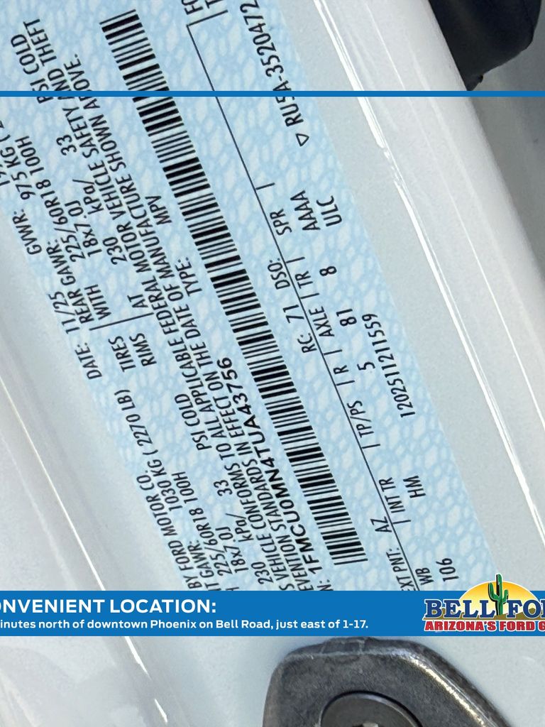 This Ford Escape is equipped with the following options: Equipment Group 300A (3.81 Axle Ratio, 4-Way Manual Front Passenger Seat, 8-Way Power Driver Seat, Ford App, Partial Vinyl/Cloth Front Sport Contour Bucket Seats with Red Stitching, Radio: AM/FM Stereo with SiriusXM 360L, SYNC 4, and Wheels: 18" Rock Metallic Painted Aluminum), Tech Pack #1 (Adaptive Cruise Control with Stop-and-Go, Connected Navigation (1-Year Included), Digital Rear View Camera, Evasive Steering Assist, Ford Co-Pilot360 Assist+, Intersection Assist, Predictive Speed Assist, Rear Parking Sensor, and SYNC 4 with Enhanced Voice Recognition), 4-Wheel Disc Brakes, 6 Speakers, ABS brakes, Air Conditioning, Alloy wheels, AM/FM radio: SiriusXM 360L, Auto High-beam Headlights, Automatic temperature control, Brake assist, Bumpers: body-color, Compass, Delay-off headlights, Driver door bin, Driver vanity mirror, Dual front impact airbags, Dual front side impact airbags, Electronic Stability Control, Emergency communication system: SYNC 4 911 Assist, Four wheel independent suspension, Front anti-roll bar, Front Bucket Seats, Front Center Armrest, Front dual zone A/C, Front reading lights, Fully automatic headlights, Heated steering wheel, Illuminated entry, Knee airbag, Low tire pressure warning, Occupant sensing airbag, Outside temperature display, Overhead airbag, Overhead console, Panic alarm, Passenger door bin, Passenger vanity mirror, Power door mirrors, Power driver seat, Power steering, Power windows, Radio data system, Rear anti-roll bar, Rear reading lights, Rear seat center armrest, Rear window defroster, Rear window wiper, Remote keyless entry, Speed control, Speed-sensing steering, Speed-Sensitive Wipers, Split folding rear seat, Spoiler, Sport steering wheel, Steering wheel mounted audio controls, Tachometer, Telescoping steering wheel, Tilt steering wheel, Traction control, Trip computer, and Variably intermittent wipers. Price includes: $1500 - Retail Customer Cash. Exp. 03/31/2026 $2000 - Bonus Customer Cash. Exp. 03/31/2026