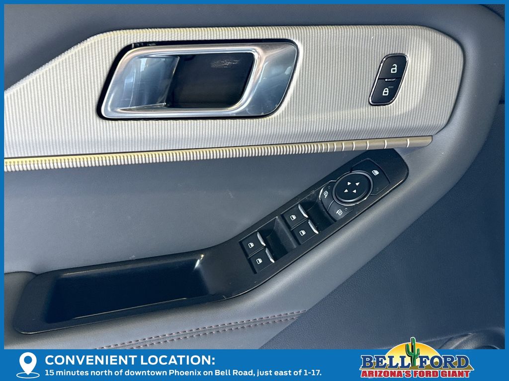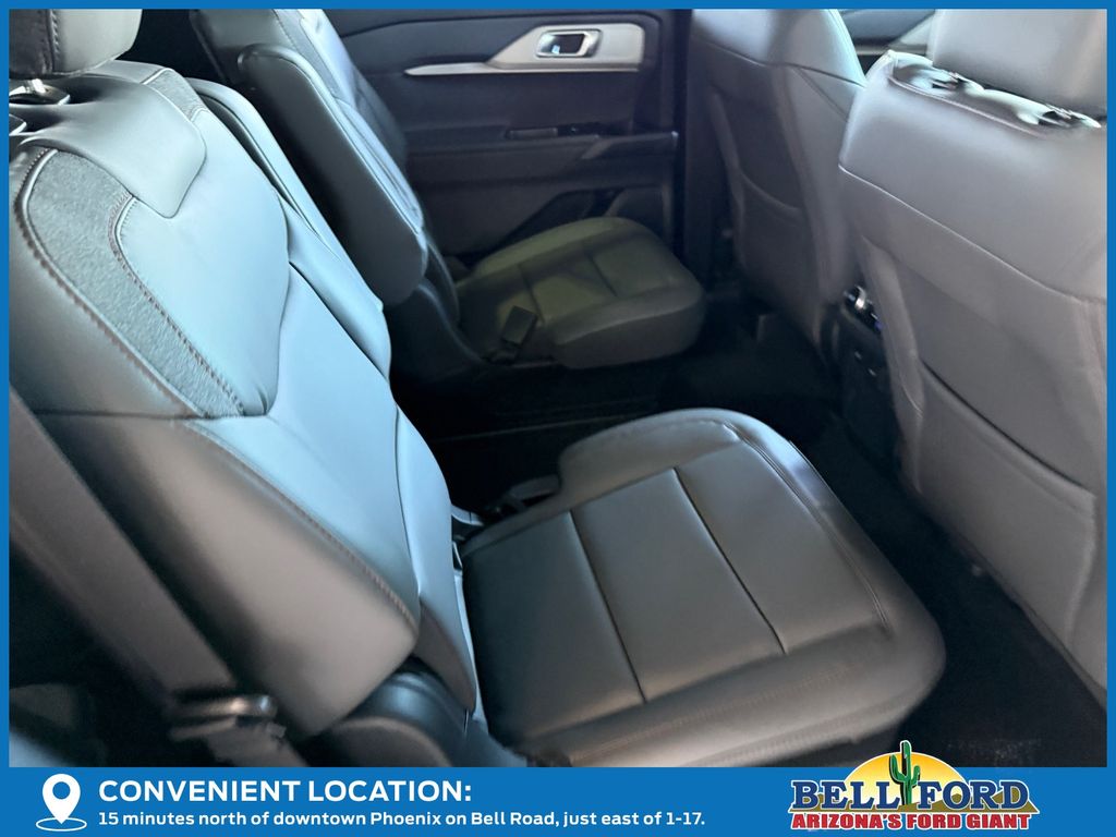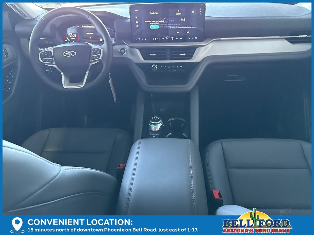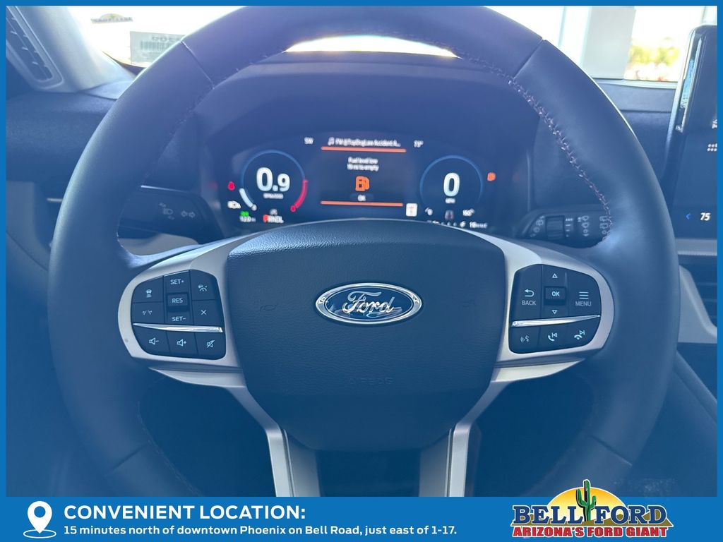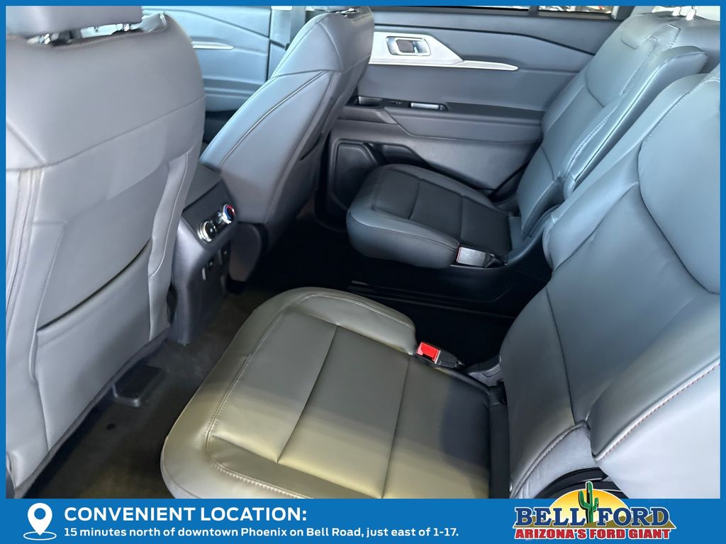 This Ford Explorer is equipped with the following options: 4WD, 3rd row seats: bench, 4-Wheel Disc Brakes, 6 Speakers, ABS brakes, Air Conditioning, Alloy wheels, AM/FM radio: SiriusXM with 360L, AM/FM Stereo, Apple CarPlay/Android Auto, Auto High-beam Headlights, Automatic temperature control, Brake assist, Bumpers: body-color, Compass, Delay-off headlights, Driver door bin, Driver vanity mirror, Dual front impact airbags, Dual front side impact airbags, Electronic Stability Control, Emergency communication system: 911 Assist, Exterior Parking Camera Rear, Four wheel independent suspension, Front anti-roll bar, Front Bucket Seats, Front Center Armrest, Front dual zone A/C, Front reading lights, Fully automatic headlights, Heated door mirrors, Illuminated entry, Internet access capable: FordPass Connect 5G, Knee airbag, Low tire pressure warning, Navigation System, Occupant sensing airbag, Outside temperature display, Overhead airbag, Overhead console, Panic alarm, Passenger door bin, Passenger vanity mirror, Power driver seat, Power steering, Power windows, Rear air conditioning, Rear anti-roll bar, Rear reading lights, Rear window defroster, Rear window wiper, Remote keyless entry, Security system, Speed control, Speed-sensing steering, Speed-Sensitive Wipers, Split folding rear seat, Spoiler, Steering wheel mounted audio controls, Tachometer, Telescoping steering wheel, Tilt steering wheel, Traction control, Trip computer, Unique Cloth Captain's Chairs, Variably intermittent wipers, and Wheels: 18" Sparkle Silver-Painted Aluminum.