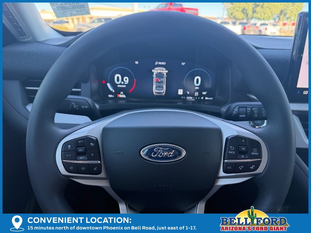 This Ford Explorer is equipped with the following options: 3rd row seats: bench, 4-Wheel Disc Brakes, 6 Speakers, ABS brakes, Air Conditioning, Alloy wheels, AM/FM radio: SiriusXM with 360L, AM/FM Stereo, Apple CarPlay/Android Auto, Auto High-beam Headlights, Automatic temperature control, Brake assist, Bumpers: body-color, Compass, Delay-off headlights, Driver door bin, Driver vanity mirror, Dual front impact airbags, Dual front side impact airbags, Electronic Stability Control, Emergency communication system: 911 Assist, Exterior Parking Camera Rear, Four wheel independent suspension, Front anti-roll bar, Front Bucket Seats, Front Center Armrest, Front dual zone A/C, Front reading lights, Fully automatic headlights, Heated door mirrors, Illuminated entry, Knee airbag, Low tire pressure warning, Navigation System, Occupant sensing airbag, Outside temperature display, Overhead airbag, Overhead console, Panic alarm, Passenger door bin, Passenger vanity mirror, Power door mirrors, Power driver seat, Power steering, Power windows, Rear air conditioning, Rear anti-roll bar, Rear reading lights, Rear window defroster, Rear window wiper, Remote keyless entry, Security system, Speed control, Speed-sensing steering, Speed-Sensitive Wipers, Split folding rear seat, Spoiler, Steering wheel mounted audio controls, Tachometer, Telescoping steering wheel, Tilt steering wheel, Traction control, Trip computer, Variably intermittent wipers, and Wheels: 18" Sparkle Silver-Painted Aluminum. Price includes: $1000 - Retail Bonus Cash. Exp. 03/31/2026 $2500 - Retail Customer Cash. Exp. 03/31/2026