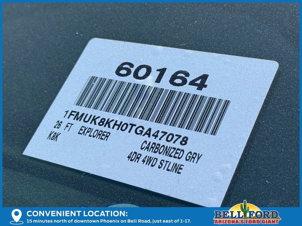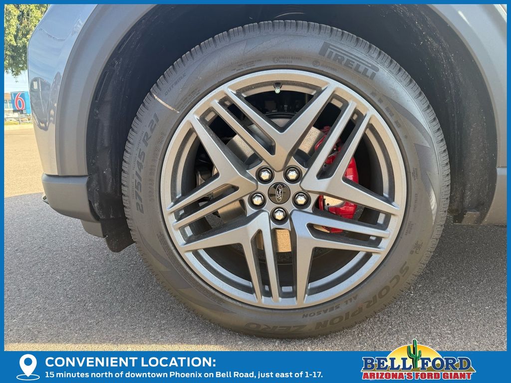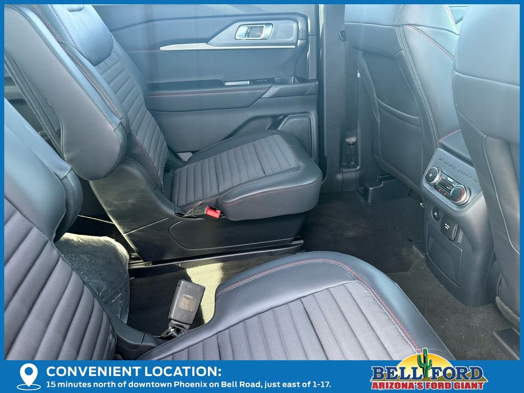 This Ford Explorer is equipped with the following options: Equipment Group 300A Standard Package (Heated Unique Cloth Captain's Chairs, Radio: B&O Sound System by Bang and Olufsen, and Wheels: 20" Ebony-Painted Machined Aluminum), Premium Package (110V/150W AC Power Outlet, 2nd Row Heated Seats, Ambient Lighting, Auto-Dimming Interior Rear-View Mirror, Manual-Folding Sideview Mirrors, Memory Driver's Seat, and Rain-Sensing Wipers (front Only)), ST-Line Street Pack (Performance Brakes, Red Painted Performance Front and Rear Brake Calipers, and Wheels: 21" Magnetite-Painted Aluminum), 4WD, 10 Speakers, 2nd Row Captain's Chairs w/E-Z Entry and Armrest, 3rd row seats: bench, 4-Wheel Disc Brakes, ABS brakes, Air Conditioning, Alloy wheels, AM/FM radio: SiriusXM with 360L, Apple CarPlay/Android Auto, Auto High-beam Headlights, Automatic temperature control, Brake assist, Bumpers: body-color, Compass, Delay-off headlights, Driver door bin, Driver vanity mirror, Dual front impact airbags, Dual front side impact airbags, Electronic Stability Control, Emergency communication system: 911 Assist, Exterior Parking Camera Rear, Four wheel independent suspension, Front anti-roll bar, Front Bucket Seats, Front Center Armrest, Front dual zone A/C, Front fog lights, Front reading lights, Fully automatic headlights, Garage door transmitter, Heated door mirrors, Heated front seats, Heated steering wheel, Illuminated entry, Knee airbag, Leather steering wheel, Low tire pressure warning, Navigation System, Occupant sensing airbag, Outside temperature display, Overhead airbag, Overhead console, Panic alarm, Panoramic Fixed Glass Roof with Power Shade, Passenger door bin, Passenger vanity mirror, Power door mirrors, Power driver seat, Power Liftgate, Power passenger seat, Power steering, Power windows, Rear air conditioning, Rear anti-roll bar, Rear reading lights, Rear window defroster, Rear window wiper, Remote keyless entry, Security system, Speed control, Speed-sensing steering, Speed-Sensitive Wipers, Split folding rear seat, Spoiler, Steering wheel mounted audio controls, Tachometer, Telescoping steering wheel, Tilt steering wheel, Traction control, Trip computer, and Variably intermittent wipers. Price includes: $2500 - Retail Customer Cash. Exp. 03/31/2026