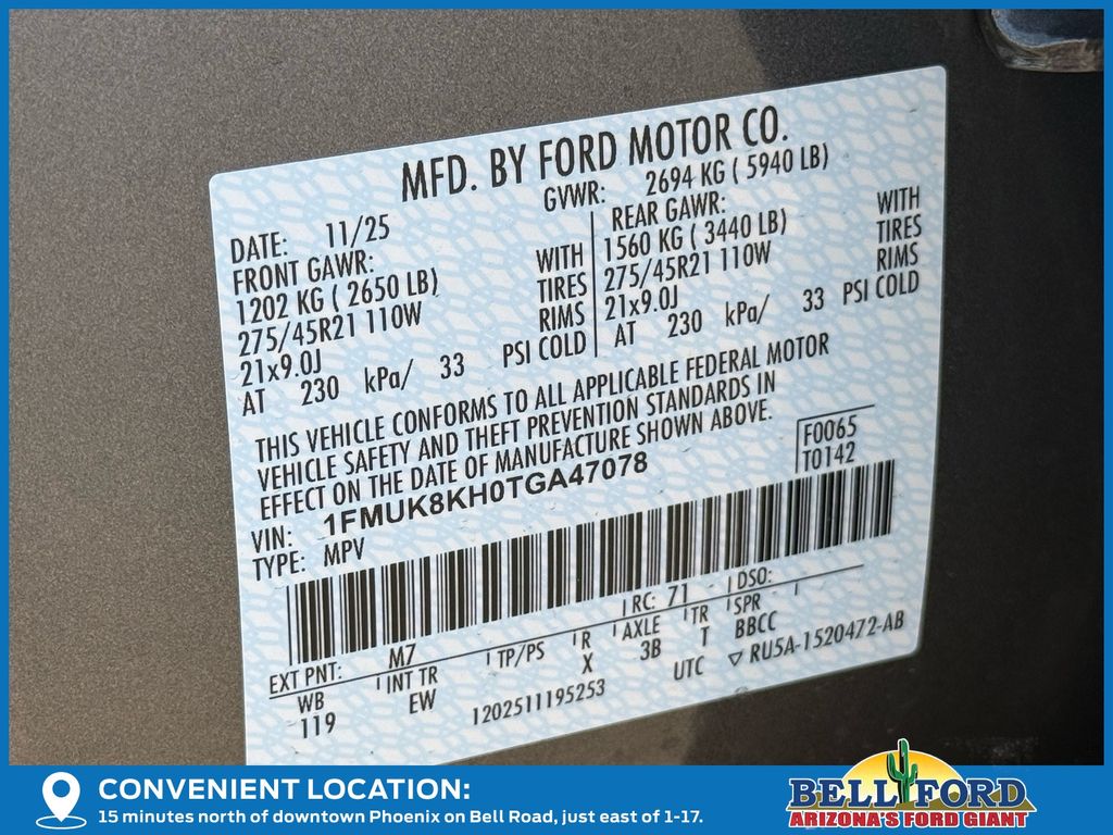 - VIN : 1FMUK8KH0TGA47078