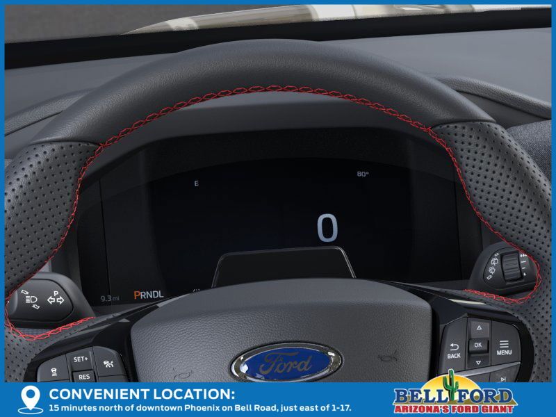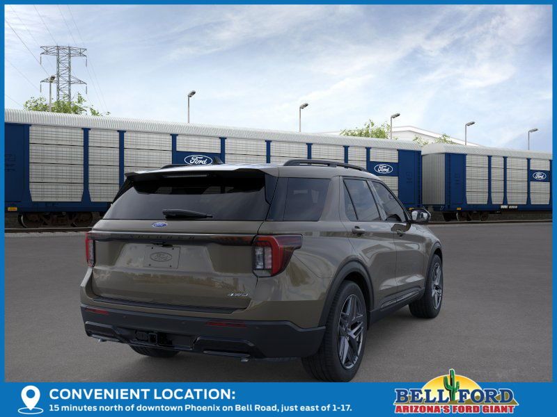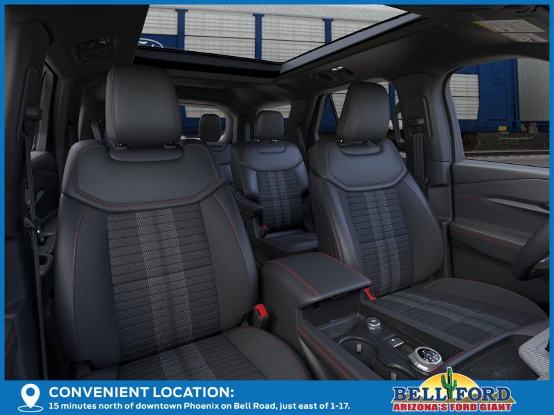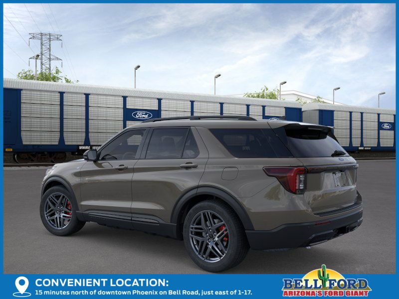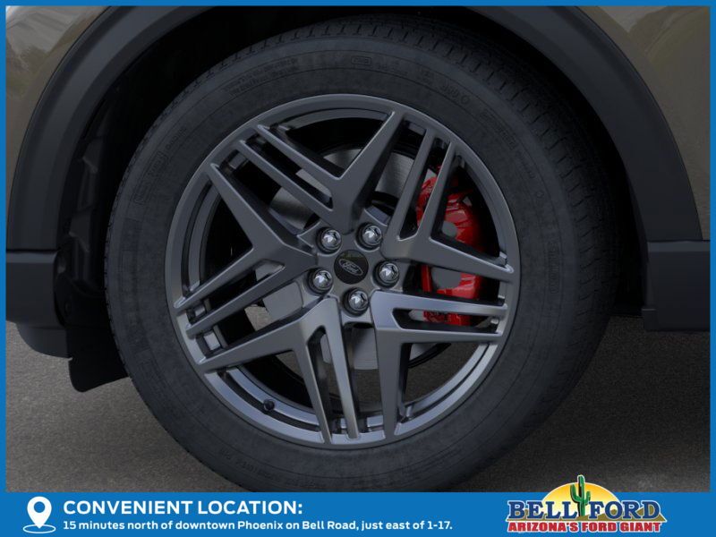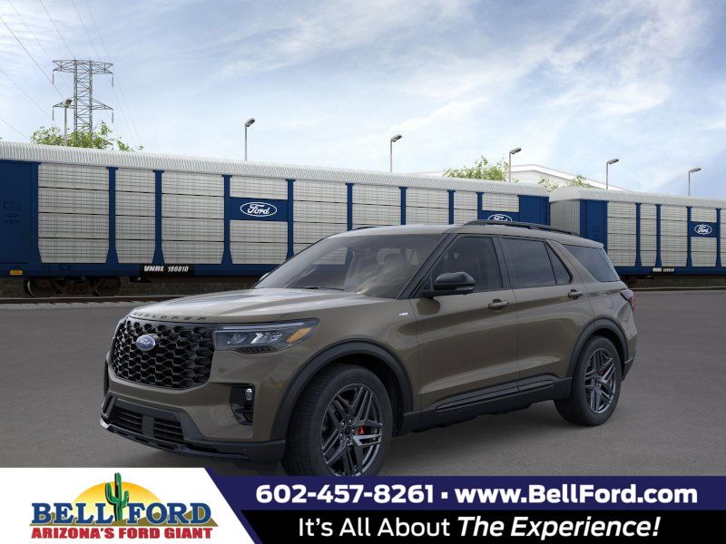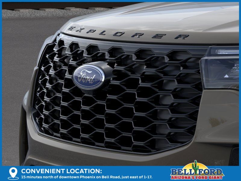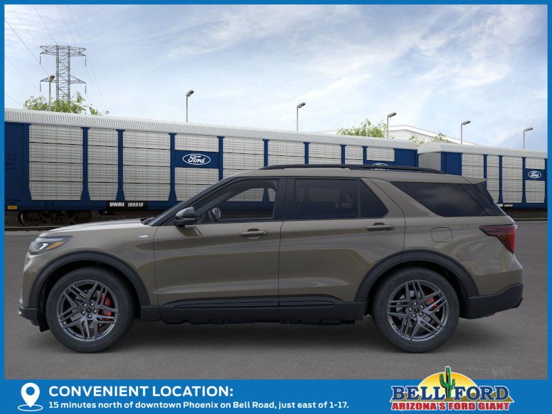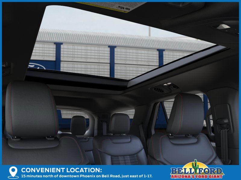 This Ford Explorer is equipped with the following options: Equipment Group 300A Standard Package (Heated Unique Cloth Captain's Chairs, Radio: B&O Sound System by Bang and Olufsen, and Wheels: 20" Ebony-Painted Machined Aluminum), Premium Package (110V/150W AC Power Outlet, 2nd Row Heated Seats, Ambient Lighting, Auto-Dimming Interior Rear-View Mirror, Manual-Folding Sideview Mirrors, Memory Driver's Seat, and Rain-Sensing Wipers (front Only)), ST-Line Street Pack (Performance Brakes, Red Painted Performance Front and Rear Brake Calipers, and Wheels: 21" Magnetite-Painted Aluminum), 4WD, 10 Speakers, 2nd Row Captain's Chairs w/E-Z Entry and Armrest, 3rd row seats: bench, 4-Wheel Disc Brakes, ABS brakes, Air Conditioning, Alloy wheels, AM/FM radio: SiriusXM with 360L, Apple CarPlay/Android Auto, Auto High-beam Headlights, Automatic temperature control, Brake assist, Bumpers: body-color, Compass, Delay-off headlights, Driver door bin, Driver vanity mirror, Dual front impact airbags, Dual front side impact airbags, Electronic Stability Control, Emergency communication system: 911 Assist, Exterior Parking Camera Rear, Four wheel independent suspension, Front anti-roll bar, Front Bucket Seats, Front Center Armrest, Front dual zone A/C, Front fog lights, Front reading lights, Fully automatic headlights, Garage door transmitter, Heated door mirrors, Heated front seats, Heated steering wheel, Illuminated entry, Internet access capable: FordPass Connect 5G, Knee airbag, Leather steering wheel, Low tire pressure warning, Navigation System, Occupant sensing airbag, Outside temperature display, Overhead airbag, Overhead console, Panic alarm, Panoramic Fixed Glass Roof with Power Shade, Passenger door bin, Passenger vanity mirror, Power door mirrors, Power driver seat, Power Liftgate, Power passenger seat, Power steering, Power windows, Rear air conditioning, Rear anti-roll bar, Rear reading lights, Rear window defroster, Rear window wiper, Remote keyless entry, Security system, Speed control, Speed-sensing steering, Speed-Sensitive Wipers, Split folding rear seat, Spoiler, Steering wheel mounted audio controls, Tachometer, Telescoping steering wheel, Tilt steering wheel, Traction control, Trip computer, and Variably intermittent wipers. Price includes: $1000 - Retail Customer Cash. Exp. 01/05/2026 $500 - Bonus Customer Cash. Exp. 01/05/2026