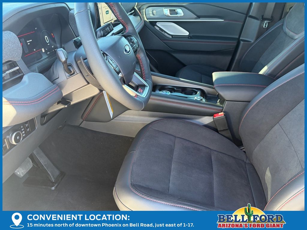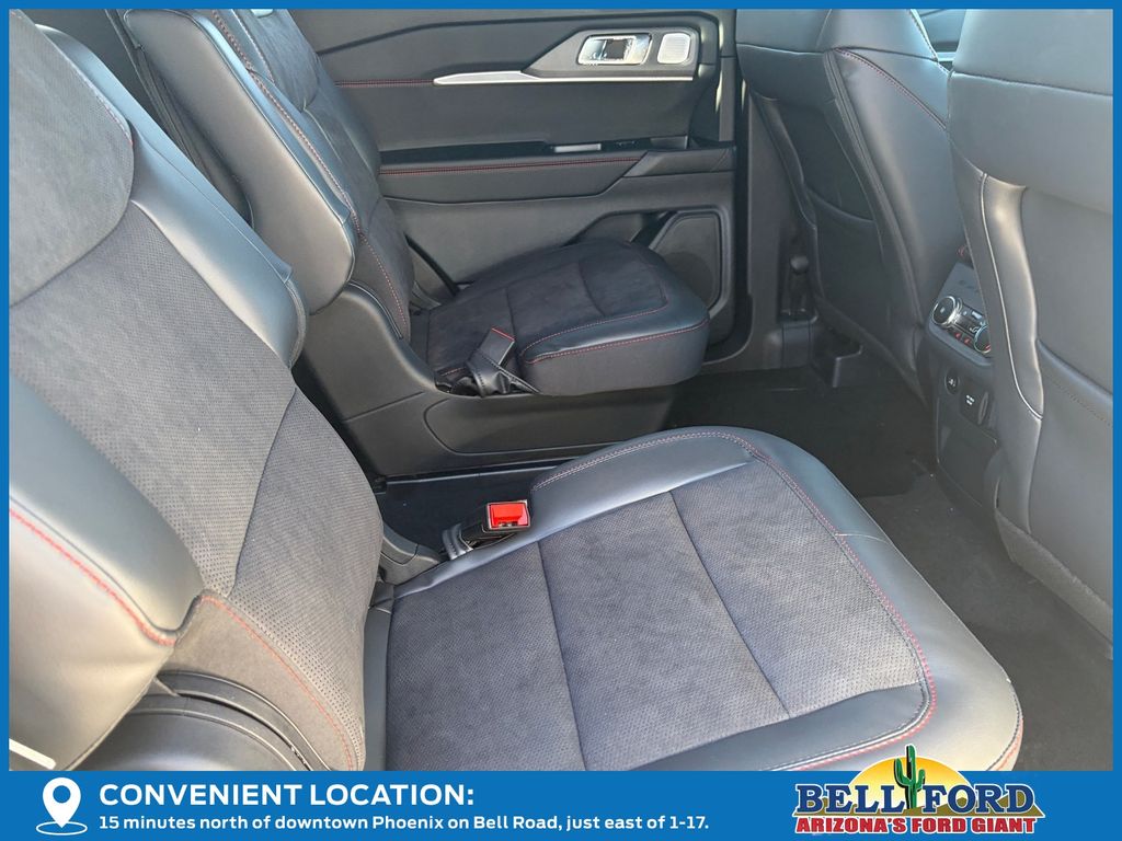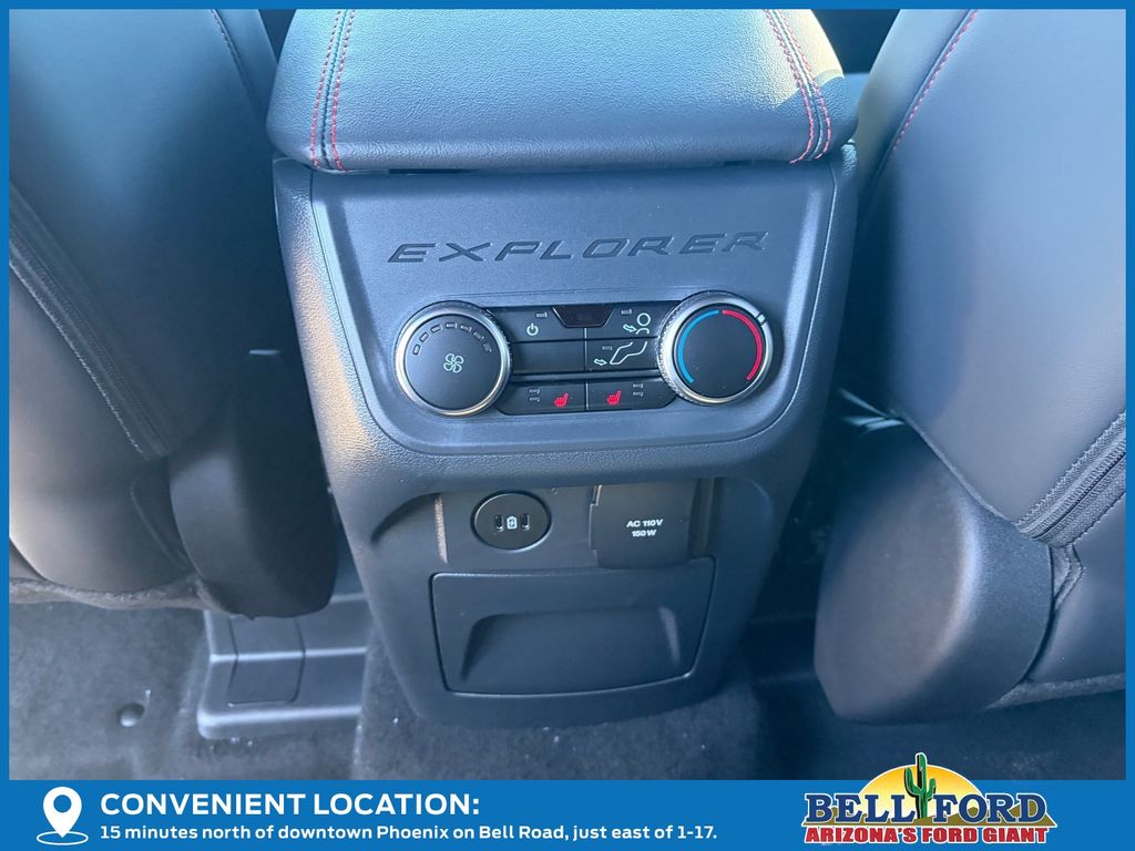 This Ford Explorer is equipped with the following options: Equipment Group 400A Standard Package (Heated/Ventilated Miko Suede Captain's Chairs, Radio: B&O Sound System by Bang and Olufsen, and Wheels: 21" Magnetite-Painted Aluminum), Sun and Sound Package (Multicontour Seats with Front Active Motion, Panoramic Fixed Glass Roof with Power Shade, Radio: B&O Sound System by Bang & Olufsen, and Remote Control Front Windows), 4WD, 10 Speakers, 3rd row seats: bench, 4-Wheel Disc Brakes, ABS brakes, Air Conditioning, Alloy wheels, AM/FM radio: SiriusXM with 360L, Apple CarPlay/Android Auto, Auto High-beam Headlights, Auto-dimming door mirrors, Auto-dimming Rear-View mirror, Automatic temperature control, Brake assist, Bumpers: body-color, Compass, Delay-off headlights, Driver door bin, Driver vanity mirror, Dual front impact airbags, Dual front side impact airbags, Electronic Stability Control, Emergency communication system: 911 Assist, Exterior Parking Camera Rear, Four wheel independent suspension, Front anti-roll bar, Front Bucket Seats, Front Center Armrest, Front dual zone A/C, Front fog lights, Front reading lights, Fully automatic headlights, Garage door transmitter, Heated door mirrors, Heated front seats, Heated rear seats, Heated steering wheel, Illuminated entry, Knee airbag, Leather steering wheel, Low tire pressure warning, Memory seat, Navigation System, Occupant sensing airbag, Outside temperature display, Overhead airbag, Overhead console, Panic alarm, Passenger door bin, Passenger vanity mirror, Power door mirrors, Power driver seat, Power Liftgate, Power passenger seat, Power steering, Power windows, Rain sensing wipers, Rear air conditioning, Rear anti-roll bar, Rear reading lights, Rear window defroster, Rear window wiper, Remote keyless entry, Security system, Speed control, Speed-sensing steering, Speed-Sensitive Wipers, Split folding rear seat, Spoiler, Sport steering wheel, Steering wheel mounted audio controls, Tachometer, Telescoping steering wheel, Tilt steering wheel, Traction control, Trip computer, Turn signal indicator mirrors, Variably intermittent wipers, and Ventilated front seats. Price includes: $2500 - Retail Customer Cash. Exp. 03/31/2026