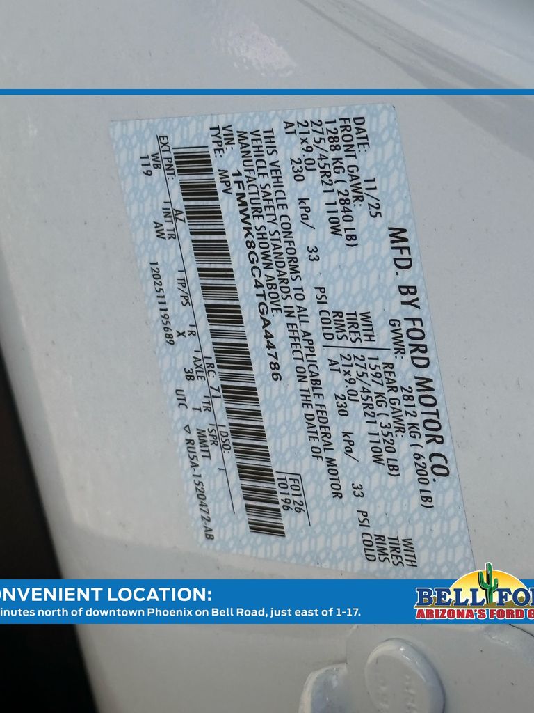 - VIN : 1FMWK8GC4TGA44786