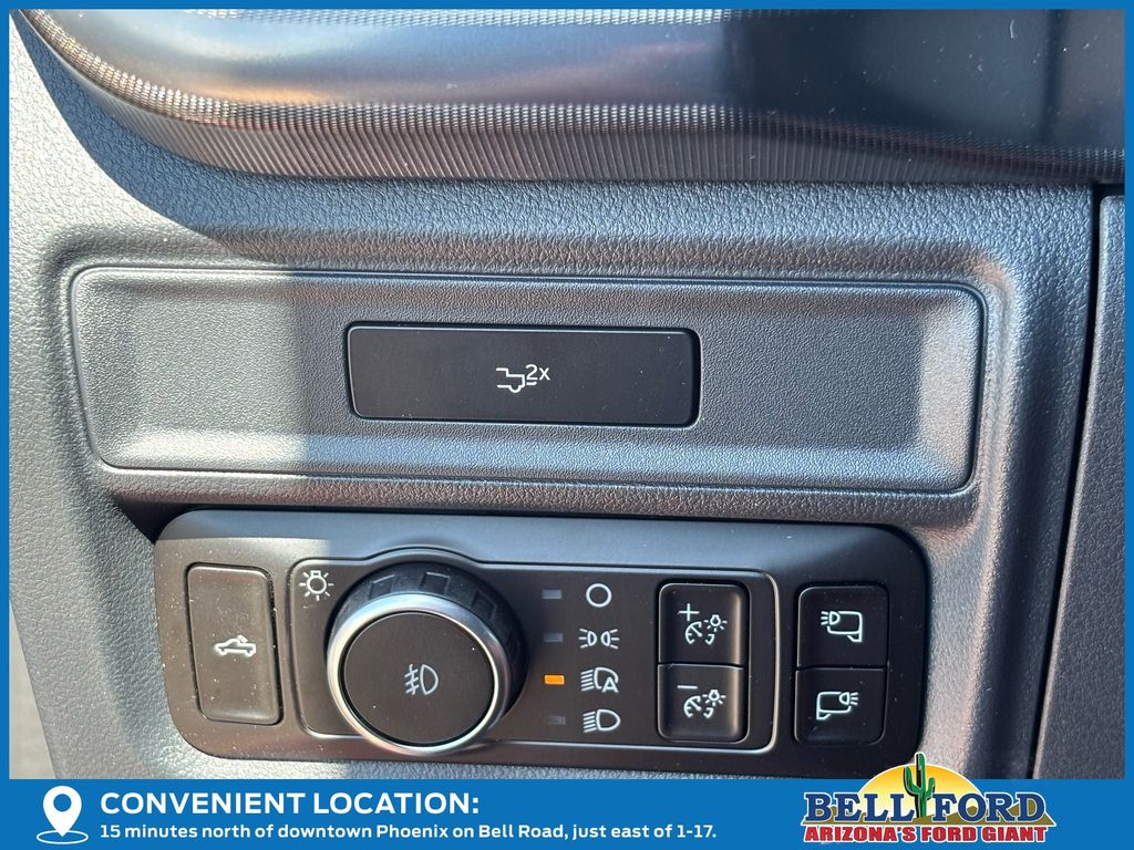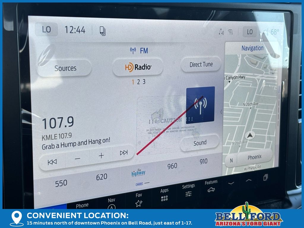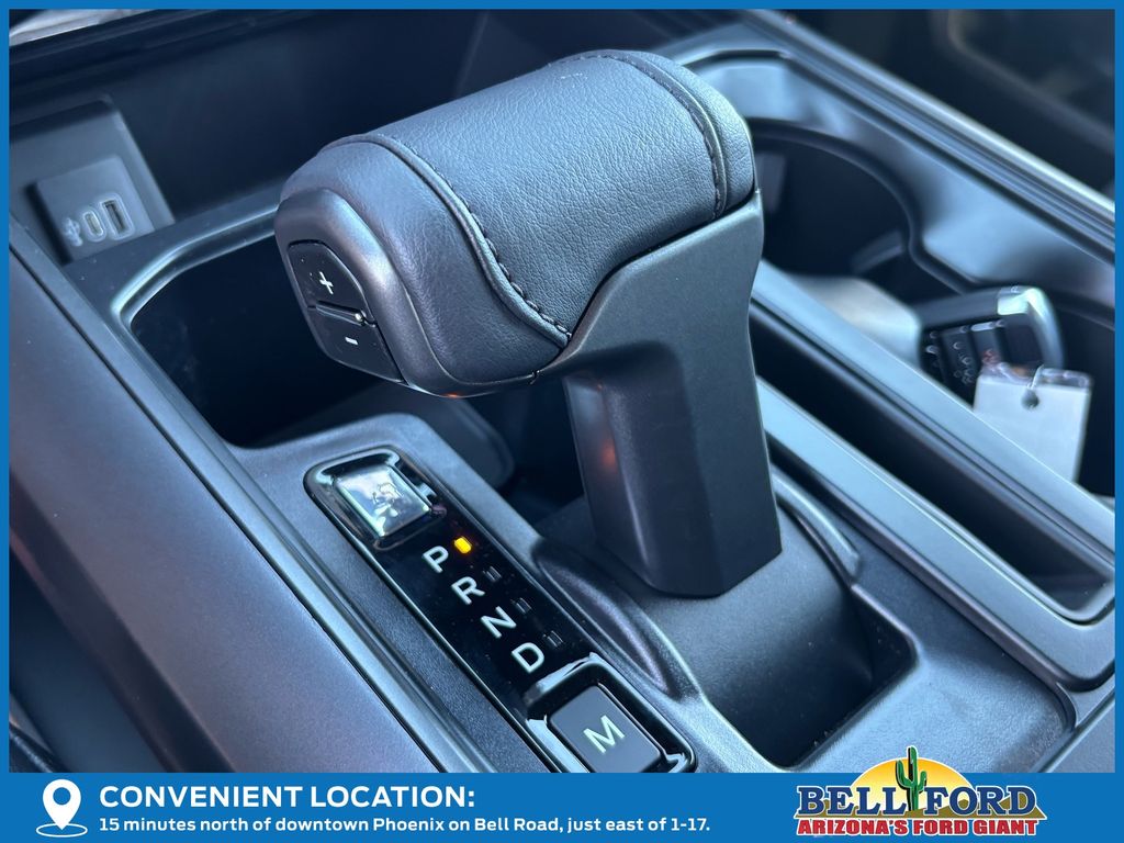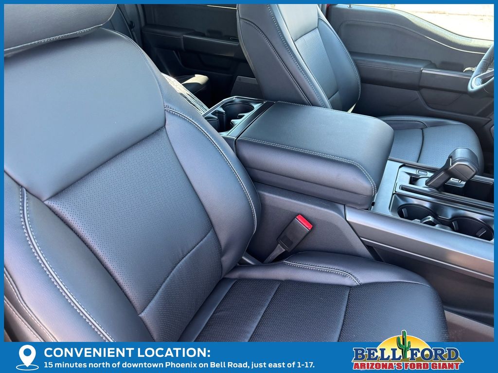 This Ford F-150 is equipped with the following options: Equipment Group 501A Mid (ActiveX Trimmed Bucket Seats, Illuminated Driver and Passenger Visors, Power-Adjustable Pedals with Memory, Power-Sliding Rear Window, Radio: B&O Sound System by Bang and Olufsen, SYNC 4 with Enhanced Voice Recognition, and Wheels: 20" Chrome-Like PVD), Ford Connectivity Package (1-Year Included), FX4 Off-Road Package (4x4 FX4 Off-Road Bodyside Decal, Hill Descent Control, Monotube Rear Shocks, Off-Road Tuned Front Shock Absorbers, Rock Crawl Mode, and Tray Style Floor Liner Without Carpet Mats), Internet access capable: 5G Modem - Ford Connectivity Package, Lariat Black Appearance Package (Black Exterior Badging, Black Grille, Black Taillamp Bezels, Body-Color Front and Rear Bumpers, Dark Interior Appliques, Gray Box Side Decal, and Matte Black Tailgate F-150 Decal), Tow/Haul Package (Integrated Trailer Brake Controller), 4WD, 4-Wheel Disc Brakes, 8 Speakers, ABS brakes, Air Conditioning, Alloy wheels, AM/FM radio: SiriusXM with 360L, Auto High-beam Headlights, Auto-dimming door mirrors, Auto-dimming Rear-View mirror, Automatic temperature control, Brake assist, Bumpers: chrome, Chrome wheels, Compass, Delay-off headlights, Driver door bin, Driver vanity mirror, Driver's Side SecuriCode Keyless-Entry Keypad, Dual front impact airbags, Dual front side impact airbags, Electronic Stability Control, Emergency communication system: SYNC 4 911 Assist, Front anti-roll bar, Front Bucket Seats, Front Center Armrest, Front dual zone A/C, Front fog lights, Front reading lights, Front wheel independent suspension, Fully automatic headlights, Garage door transmitter, Heated door mirrors, Heated front seats, Heated steering wheel, Illuminated entry, Low tire pressure warning, Memory seat, Navigation system: Connected Navigation, Occupant sensing airbag, Outside temperature display, Overhead airbag, Overhead console, Panic alarm, Passenger door bin, Passenger vanity mirror, Power door mirrors, Power driver seat, Power passenger seat, Power steering, Power windows, Radio data system, Rain sensing wipers, Rear reading lights, Rear seat center armrest, Rear step bumper, Rear window defroster, Remote keyless entry, Security system, Speed control, Split folding rear seat, Steering wheel mounted audio controls, Tachometer, Telescoping steering wheel, Tilt steering wheel, Traction control, Trip computer, Turn signal indicator mirrors, Variably intermittent wipers, Ventilated front seats, and Wheels: 18" Chrome-Like PVD.