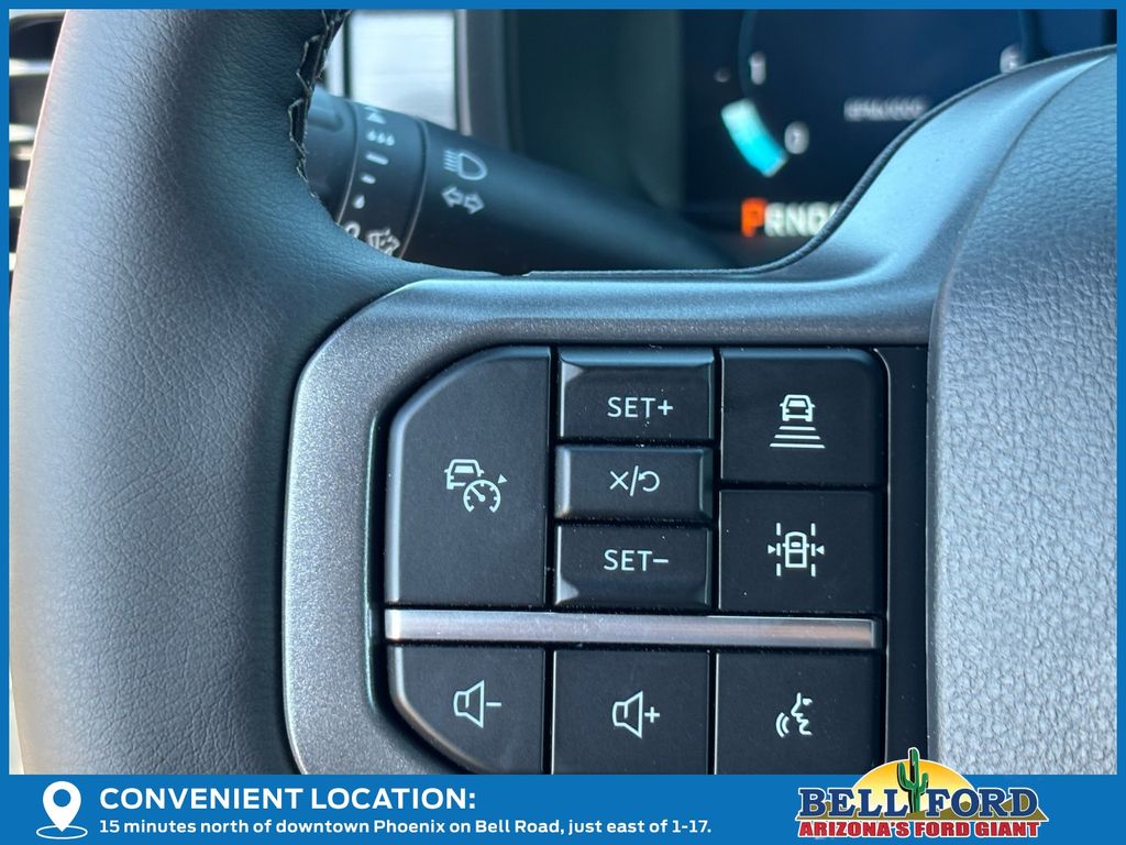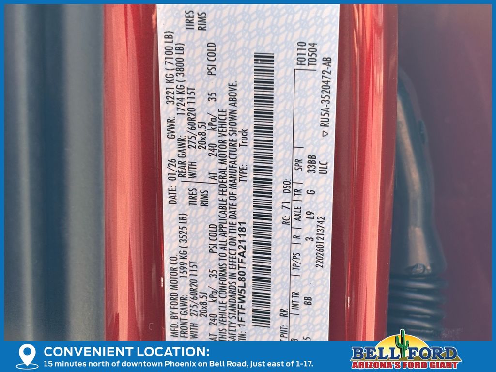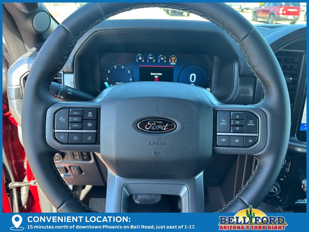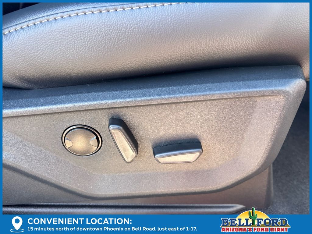 This Ford F-150 is equipped with the following options: Equipment Group 501A Mid (ActiveX Trimmed Bucket Seats, Illuminated Driver and Passenger Visors, Power-Adjustable Pedals with Memory, Power-Sliding Rear Window, Radio: B&O Sound System by Bang and Olufsen, SYNC 4 with Enhanced Voice Recognition, and Wheels: 20" Chrome-Like PVD), Ford Connectivity Package (1-Year Included), FX4 Off-Road Package (4x4 FX4 Off-Road Bodyside Decal, Hill Descent Control, Monotube Rear Shocks, Off-Road Tuned Front Shock Absorbers, Rock Crawl Mode, and Tray Style Floor Liner Without Carpet Mats), Internet access capable: 5G Modem - Ford Connectivity Package, Lariat Black Appearance Package (Black Exterior Badging, Black Grille, Black Taillamp Bezels, Body-Color Front and Rear Bumpers, Dark Interior Appliques, Gray Box Side Decal, and Matte Black Tailgate F-150 Decal), Tow/Haul Package (Integrated Trailer Brake Controller), 4WD, 4-Wheel Disc Brakes, 8 Speakers, ABS brakes, Air Conditioning, Alloy wheels, AM/FM radio: SiriusXM with 360L, Auto High-beam Headlights, Auto-dimming door mirrors, Auto-dimming Rear-View mirror, Automatic temperature control, Brake assist, Bumpers: chrome, Chrome wheels, Compass, Delay-off headlights, Driver door bin, Driver vanity mirror, Driver's Side SecuriCode Keyless-Entry Keypad, Dual front impact airbags, Dual front side impact airbags, Electronic Stability Control, Emergency communication system: SYNC 4 911 Assist, Front anti-roll bar, Front Bucket Seats, Front Center Armrest, Front dual zone A/C, Front fog lights, Front reading lights, Front wheel independent suspension, Fully automatic headlights, Garage door transmitter, Heated door mirrors, Heated front seats, Heated steering wheel, Illuminated entry, Low tire pressure warning, Memory seat, Navigation system: Connected Navigation, Occupant sensing airbag, Outside temperature display, Overhead airbag, Overhead console, Panic alarm, Passenger door bin, Passenger vanity mirror, Power door mirrors, Power driver seat, Power passenger seat, Power steering, Power windows, Radio data system, Rain sensing wipers, Rear reading lights, Rear seat center armrest, Rear step bumper, Rear window defroster, Remote keyless entry, Security system, Speed control, Split folding rear seat, Steering wheel mounted audio controls, Tachometer, Telescoping steering wheel, Tilt steering wheel, Traction control, Trip computer, Turn signal indicator mirrors, Variably intermittent wipers, Ventilated front seats, and Wheels: 18" Chrome-Like PVD.