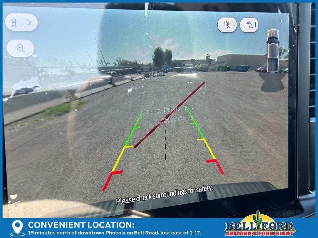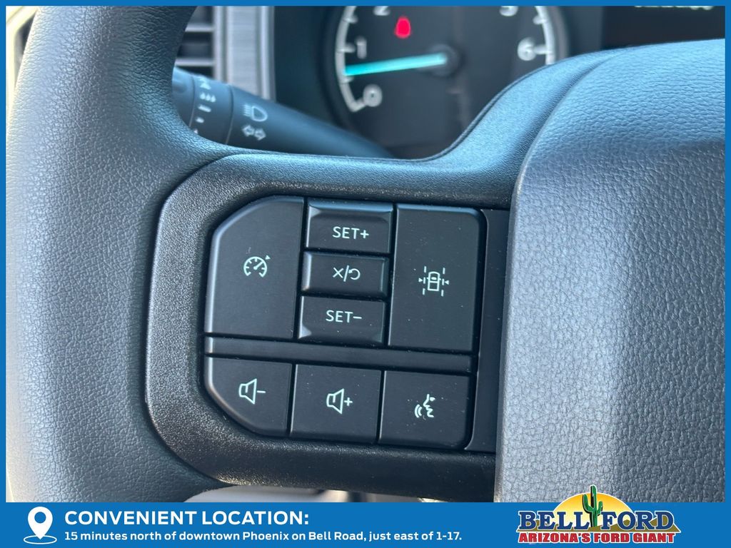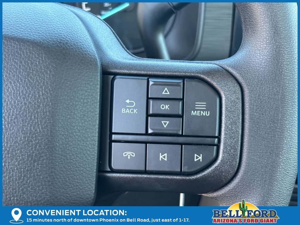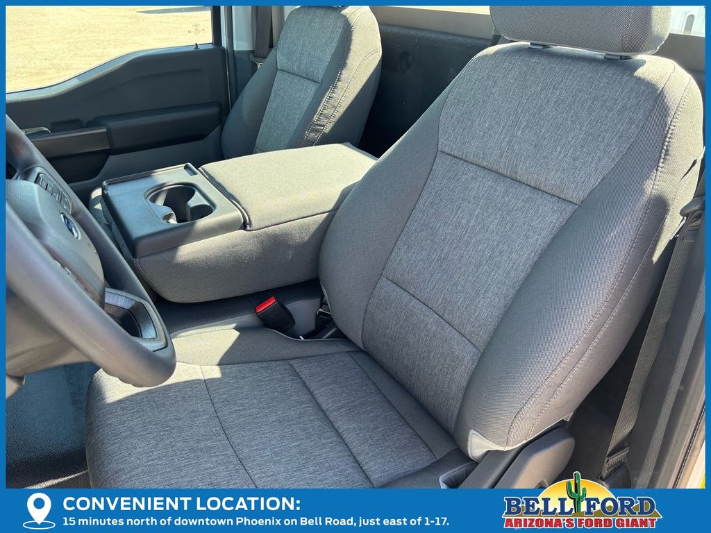 This Ford F-150 is equipped with the following options: Equipment Group 101A Standard (3.55 Axle Ratio, Cloth 40/20/40 Front Seat, Radio: AM/FM Stereo with SiriusXM 360L, SYNC 4 with Enhanced Voice Recognition, and Wheels: 17" Silver Steel), Ford Connectivity Package (1-Year Included), GVWR: 6,220 Lb Payload Package, Internet access capable: 5G Modem - Ford Connectivity Package, 4 Speakers, 4-Wheel Disc Brakes, ABS brakes, Air Conditioning, AM/FM radio: SiriusXM with 360L, Auto High-beam Headlights, Brake assist, Compass, Delay-off headlights, Driver door bin, Dual front impact airbags, Dual front side impact airbags, Electronic Stability Control, Emergency communication system: SYNC 4 911 Assist, Front anti-roll bar, Front Center Armrest, Front reading lights, Front wheel independent suspension, Fully automatic headlights, Heated door mirrors, Illuminated entry, Low tire pressure warning, Occupant sensing airbag, Outside temperature display, Overhead airbag, Overhead console, Panic alarm, Passenger door bin, Passenger vanity mirror, Power door mirrors, Power steering, Power windows, Radio data system, Rear Parking Sensors, Rear step bumper, Remote keyless entry, Security system, Speed control, Steering wheel mounted audio controls, Tachometer, Telescoping steering wheel, Tilt steering wheel, Traction control, Trip computer, and Variably intermittent wipers.