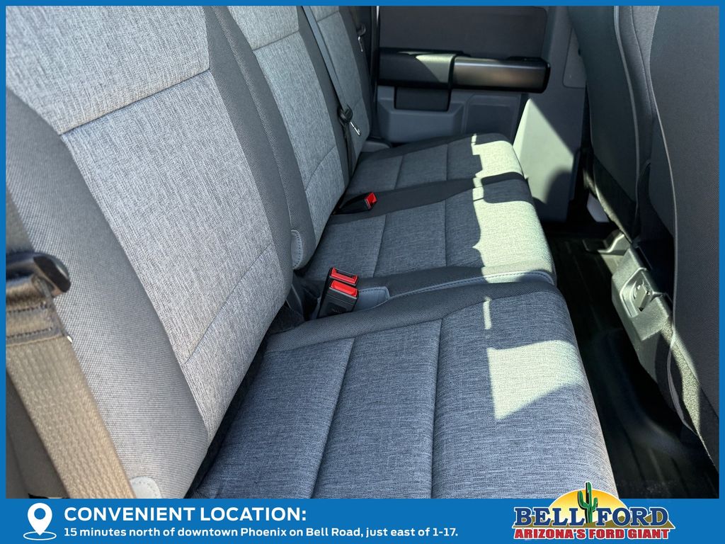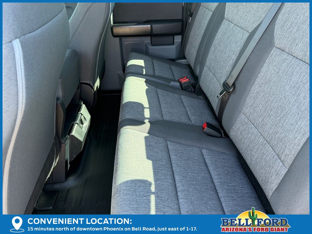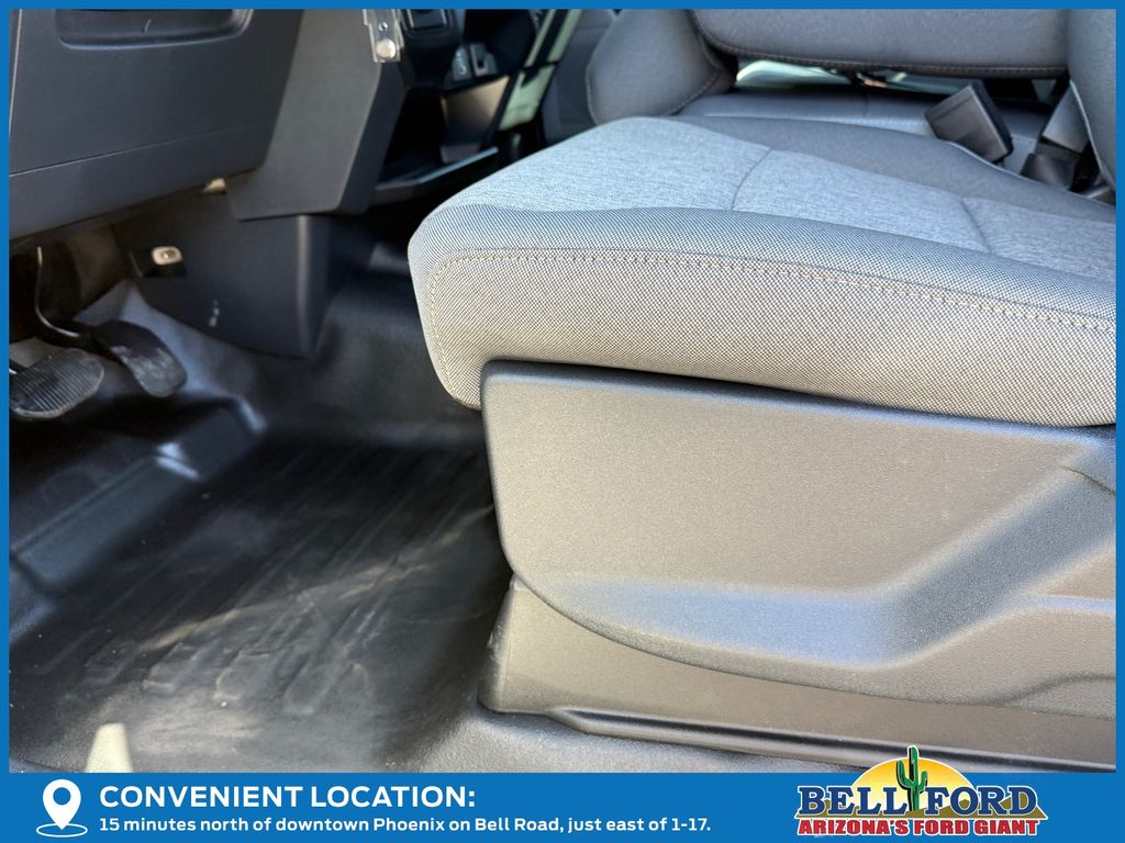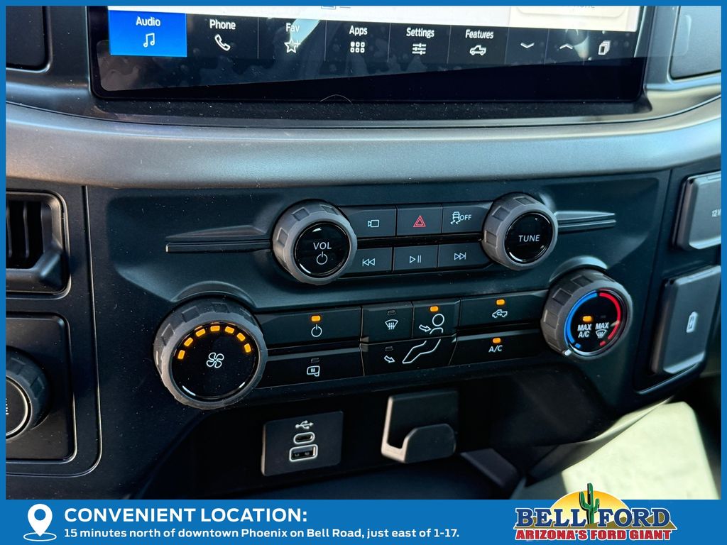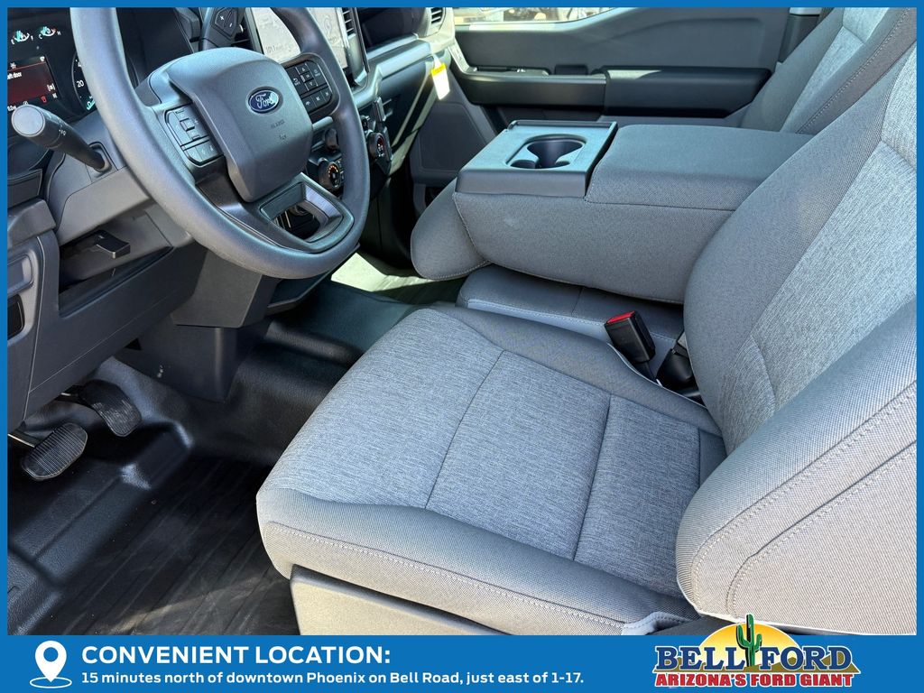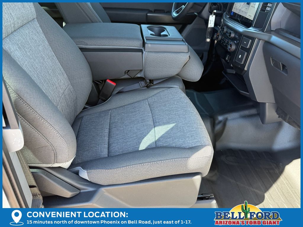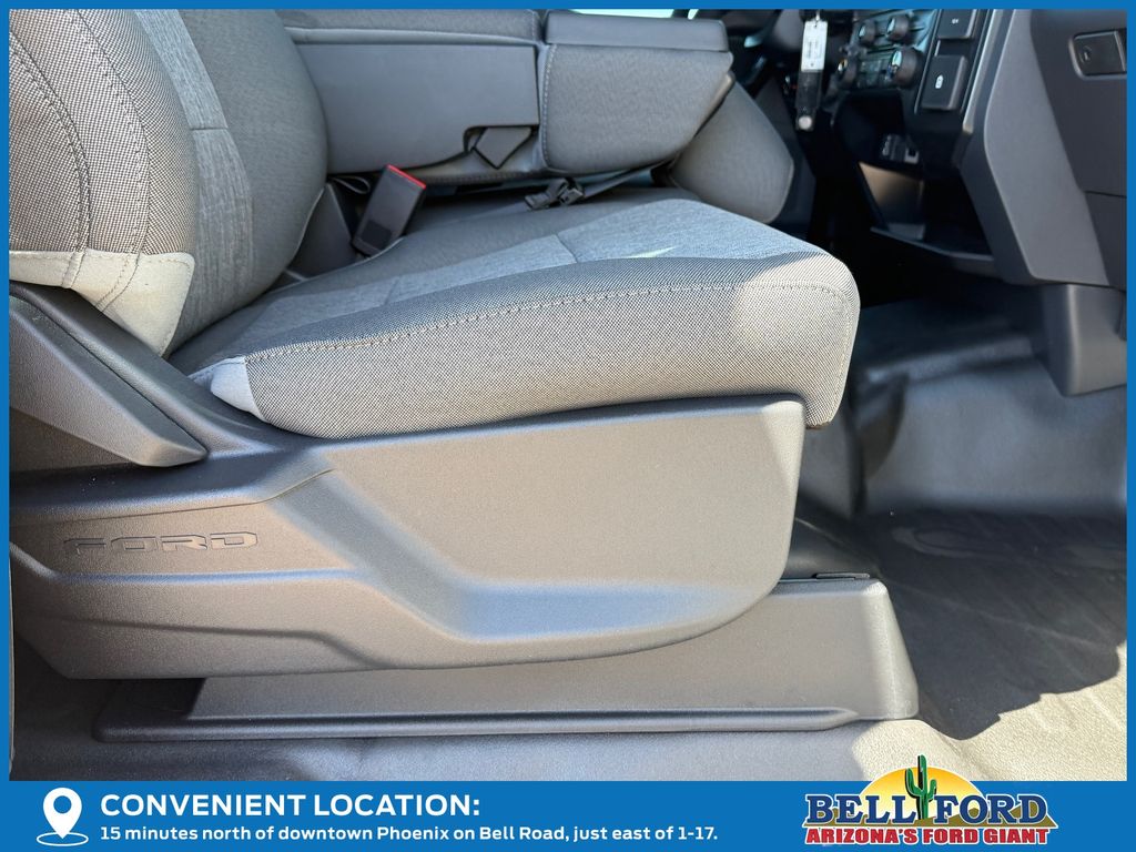 This Ford F-150 is equipped with the following options: Equipment Group 101A Standard (3.55 Axle Ratio, Cloth 40/20/40 Front Seat, Radio: AM/FM Stereo with SiriusXM 360L, SYNC 4 with Enhanced Voice Recognition, and Wheels: 17" Silver Steel), Ford Connectivity Package (1-Year Included), GVWR: 6,365 lbs Payload Package, Internet access capable: 5G Modem - Ford Connectivity Package, 4-Wheel Disc Brakes, 6 Speakers, ABS brakes, Air Conditioning, AM/FM radio: SiriusXM with 360L, Auto High-beam Headlights, Brake assist, Compass, Delay-off headlights, Driver door bin, Dual front impact airbags, Dual front side impact airbags, Electronic Stability Control, Emergency communication system: SYNC 4 911 Assist, Front anti-roll bar, Front Center Armrest, Front reading lights, Front wheel independent suspension, Fully automatic headlights, Heated door mirrors, Illuminated entry, Low tire pressure warning, Occupant sensing airbag, Outside temperature display, Overhead airbag, Overhead console, Panic alarm, Passenger door bin, Passenger vanity mirror, Power door mirrors, Power steering, Power windows, Radio data system, Rear Parking Sensors, Rear step bumper, Remote keyless entry, Security system, Speed control, Split folding rear seat, Steering wheel mounted audio controls, Tachometer, Telescoping steering wheel, Tilt steering wheel, Traction control, Trip computer, and Variably intermittent wipers.