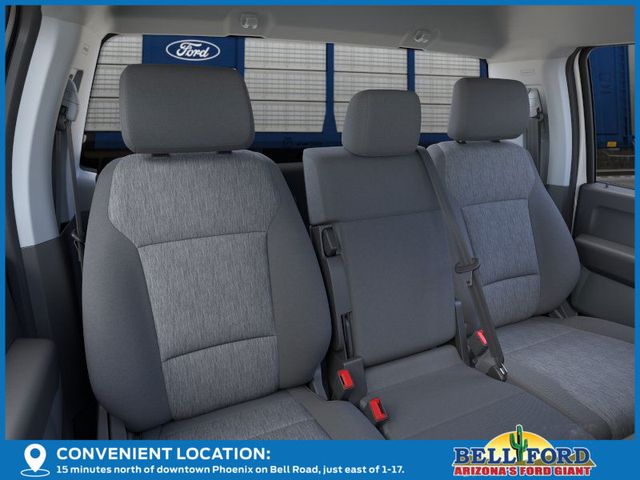 Ford Connectivity Package (1-Year Included), GVWR: 10,000 lb Payload Package, Internet access capable: 5G Modem - Ford Connectivity Package, Order Code 600A, XL Chrome Package (Bright Chrome Hub Covers & Center Ornaments, Chrome Front Bumper, Chrome Rear Step Bumper, and Halogen Fog Lamps), 17" Argent Painted Steel Wheels, 250 Amp Alternator (Gas), 3.73 Axle Ratio, 4 Speakers, 4-Wheel Disc Brakes, 400W Pro Power Onboard, ABS brakes, Air Conditioning, AM/FM radio, AM/FM Stereo w/MP3 Player, Brake assist, Cloth 40/20/40 Split Bench Seat, Compass, Delay-off headlights, Dual front impact airbags, Dual front side impact airbags, Electronic Stability Control, Emergency communication system: SYNC 4 911 Assist, Exterior Parking Camera Rear, Front anti-roll bar, Front Center Armrest w/Storage, Front reading lights, Front wheel independent suspension, Fully automatic headlights, HD Vinyl 40/20/40 Split Bench Seat, Heated door mirrors, Illuminated entry, Low tire pressure warning, Outside temperature display, Overhead airbag, Overhead console, Panic alarm, Passenger cancellable airbag, Passenger vanity mirror, Platform Running Boards, Power door mirrors, Power steering, Power windows, Rear step bumper, Remote keyless entry, Security system, Speed control, Steering wheel mounted audio controls, SYNC 4, Tachometer, Telescoping steering wheel, Tilt steering wheel, Traction control, Trailer Brake Controller, Trip computer, Turn signal indicator mirrors, Upfitter Switches (6), and Variably intermittent wipers.