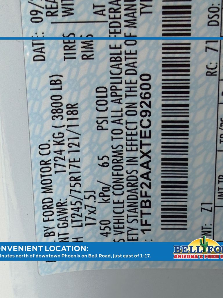 - VIN : 1FTBF2AAXTEC92600