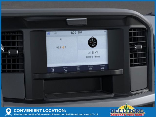 Ford Connectivity Package (1-Year Included), GVWR: 10,000 lb Payload Package, Internet access capable: 5G Modem - Ford Connectivity Package, Order Code 600A, XL Chrome Package (Bright Chrome Hub Covers & Center Ornaments, Chrome Front Bumper, Chrome Rear Step Bumper, and Halogen Fog Lamps), 17" Argent Painted Steel Wheels, 250 Amp Alternator (Gas), 3.73 Axle Ratio, 4-Wheel Disc Brakes, 400W Pro Power Onboard, 6 Speakers, ABS brakes, Air Conditioning, AM/FM radio, AM/FM Stereo w/MP3 Player, Brake assist, Compass, Delay-off headlights, Dual front impact airbags, Dual front side impact airbags, Electronic Stability Control, Emergency communication system: SYNC 4 911 Assist, Exterior Parking Camera Rear, Front anti-roll bar, Front Center Armrest w/Storage, Front reading lights, Front wheel independent suspension, Fully automatic headlights, HD Vinyl 40/20/40 Split Bench Seat, Heated door mirrors, Illuminated entry, Low tire pressure warning, Outside temperature display, Overhead airbag, Overhead console, Panic alarm, Passenger cancellable airbag, Passenger vanity mirror, Platform Running Boards, Power door mirrors, Power steering, Power windows, Rear step bumper, Remote keyless entry, Security system, Speed control, Split folding rear seat, Steering wheel mounted audio controls, SYNC 4, Tachometer, Telescoping steering wheel, Tilt steering wheel, Traction control, Trailer Brake Controller, Trip computer, Turn signal indicator mirrors, Upfitter Switches (6), and Variably intermittent wipers.