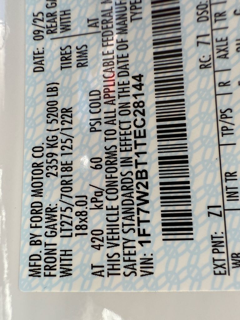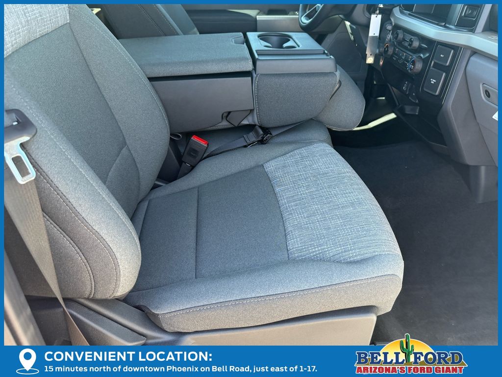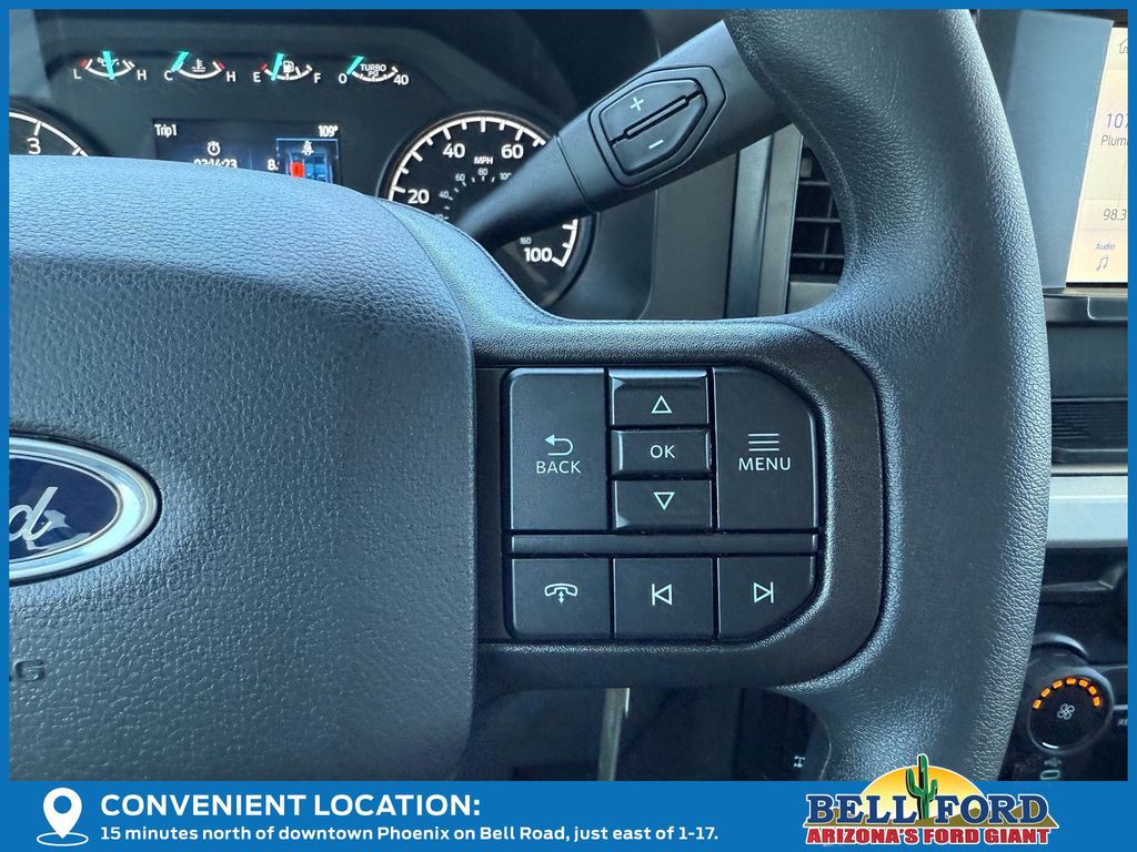 This Ford F-250SD is equipped with the following options: FX4 Off-Road Package (Hill Descent Control, Off-Road Specifically Tuned Shock Absorbers, and Unique FX4 Off-Road Box Decal), GVWR: 10,000 lb Payload Package, Internet access capable: 5G Modem - Ford Connectivity Package, Order Code 603A, 4WD, 4-Wheel Disc Brakes, 6 Speakers, ABS brakes, Air Conditioning, Alloy wheels, AM/FM radio, AM/FM Stereo w/MP3 Player, Auto High-beam Headlights, Brake assist, Bumpers: chrome, Cloth 40/20/40 Split Bench Seat, Compass, Delay-off headlights, Driver door bin, Driver vanity mirror, Dual AGM 68 AH Battery, Dual front impact airbags, Dual front side impact airbags, Electronic Stability Control, Emergency communication system: SYNC 4 911 Assist, Engine Block Heater, Exterior Parking Camera Rear, Fixed Rear Window w/Privacy Glass & Defrost, Front anti-roll bar, Front Center Armrest w/Storage, Front fog lights, Front reading lights, Fully automatic headlights, Heated door mirrors, Illuminated entry, Low tire pressure warning, Outside temperature display, Overhead airbag, Overhead console, Panic alarm, Passenger door bin, Passenger vanity mirror, Power door mirrors, Power driver seat, Power steering, Power windows, Privacy Glass, Pro Power Onboard - 2kW, Rear reading lights, Rear step bumper, Remote keyless entry, Security system, Speed control, Split folding rear seat, Steering wheel mounted audio controls, SYNC 4, Tachometer, Telescoping steering wheel, Tilt steering wheel, Traction control, Trip computer, Turn signal indicator mirrors, Upfitter Switches (6), Variably intermittent wipers, and Wheels: 18" Sparkle Silver Painted Cast Aluminum.