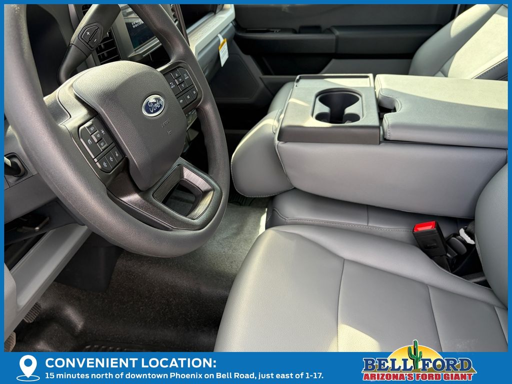 Ford Connectivity Package (1-Year Included), GVWR: 10,500 lb Payload Package, Internet access capable: 5G Modem - Ford Connectivity Package, 3-Ton Mechanical Jack, 4 Speakers, 4-Wheel Disc Brakes, 410 Amp Dual Alternators, ABS brakes, Air Conditioning, AM/FM radio, AM/FM Stereo w/MP3 Player, Brake assist, Cloth 40/20/40 Split Bench Seat, Compass, Delay-off headlights, Dual front impact airbags, Dual front side impact airbags, Electronic Stability Control, Electronic-Locking w/4.30 Axle Ratio, Emergency communication system: SYNC 4 911 Assist, Front anti-roll bar, Front Center Armrest w/Storage, Front License Plate Bracket, Front reading lights, Front wheel independent suspension, Fully automatic headlights, Heated door mirrors, Illuminated entry, Low tire pressure warning, Outside temperature display, Overhead airbag, Overhead console, Panic alarm, Passenger cancellable airbag, Passenger vanity mirror, Power door mirrors, Power steering, Power windows, Rear anti-roll bar, Rear View Camera & Prep Kit, Remote keyless entry, Security system, Speed control, Steering wheel mounted audio controls, SYNC 4 Communication & Entertainment System, Tachometer, Telescoping steering wheel, Tilt steering wheel, Traction control, Trip computer, Turn signal indicator mirrors, and Variably intermittent wipers.