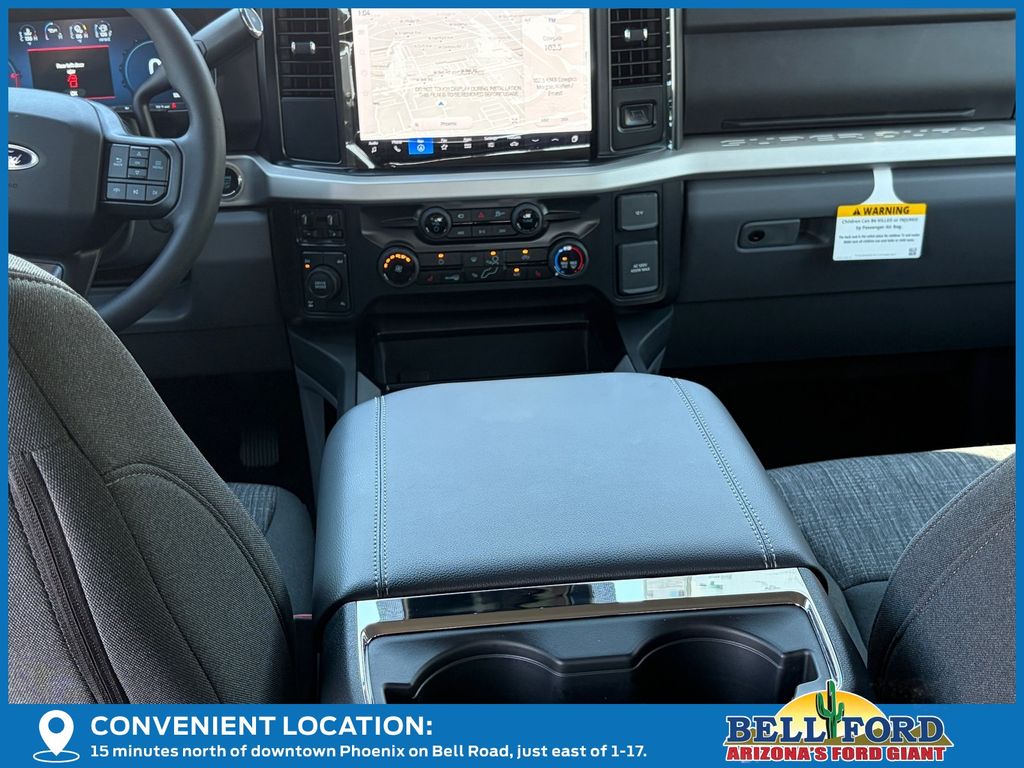 This Ford F-350SD is equipped with the following options: 360-Degree Camera Package (360-Degree Camera, BLIS w/Cross-Traffic Alert, LED Center High-Mounted Stop Lamp (CHMSL) Camera, and Rear Parking Sensors), Black Appearance Package (6" Ebony Black Angular Running Boards, Black Painted Front Grille Surround, Body Color Front & Rear Bumpers, Rear Wheel Well Liners (Pre-Installed), Tough Bed Spray-In Bedliner, and Wheels: 20" Ebony Black High Gloss), Ford Connectivity Package (1-Year Included), FX4 Off-Road Package (Hill Descent Control, Off-Road Specifically Tuned Shock Absorbers, and Unique FX4 Off-Road Box Decal), Internet access capable: 5G Modem - Ford Connectivity Package, Order Code 613A, XLT Premium Package (Automatic High Beam, Body-Color Door Handles, Bright Chrome Grille w/Chrome Inserts, Electrochromic Self-Dimming Rear-View Mirror, Heated Front Seats, Intelligent Access w/Push-Button Start, LED Box Lighting, LED Fog Lamps, PowerScope Trailer Tow Mirrors w/Heat, Radio: B&O Sound System by Bang & Olufsen, Remote Start System, Remote Tailgate Release, SiriusXM w/360L, and SYNC 4 w/Enhanced Voice Recognition), 4WD, 190 Amp Alternator, 4-Wheel Disc Brakes, 6 Speakers, ABS brakes, Air Conditioning, Alloy wheels, AM/FM radio, AM/FM Stereo w/MP3 Player, Auto High-beam Headlights, Brake assist, Bumpers: chrome, Cloth 40/20/40 Split Bench Seat, Compass, Delay-off headlights, Driver door bin, Driver vanity mirror, Dual AGM 68 AH Battery, Dual front impact airbags, Dual front side impact airbags, Electronic Stability Control, Emergency communication system: SYNC 4 911 Assist, Engine Block Heater, Exterior Parking Camera Rear, Fixed Rear Window w/Privacy Glass & Defrost, Front anti-roll bar, Front Center Armrest w/Storage, Front fog lights, Front reading lights, Fully automatic headlights, Heated door mirrors, Illuminated entry, Low tire pressure warning, Outside temperature display, Overhead airbag, Overhead console, Panic alarm, Passenger door bin, Passenger vanity mirror, Power door mirrors, Power driver seat, Power steering, Power windows, Power-Sliding Rear-Window w/Defrost, Privacy Glass, Rear reading lights, Rear step bumper, Remote keyless entry, Security system, Speed control, Split folding rear seat, Steering wheel mounted audio controls, SYNC 4, Tachometer, Telescoping steering wheel, Tilt steering wheel, Traction control, Trip computer, Turn signal indicator mirrors, Upfitter Switches (6), Variably intermittent wipers, and Wheels: 18" Sparkle Silver Painted Cast Aluminum.