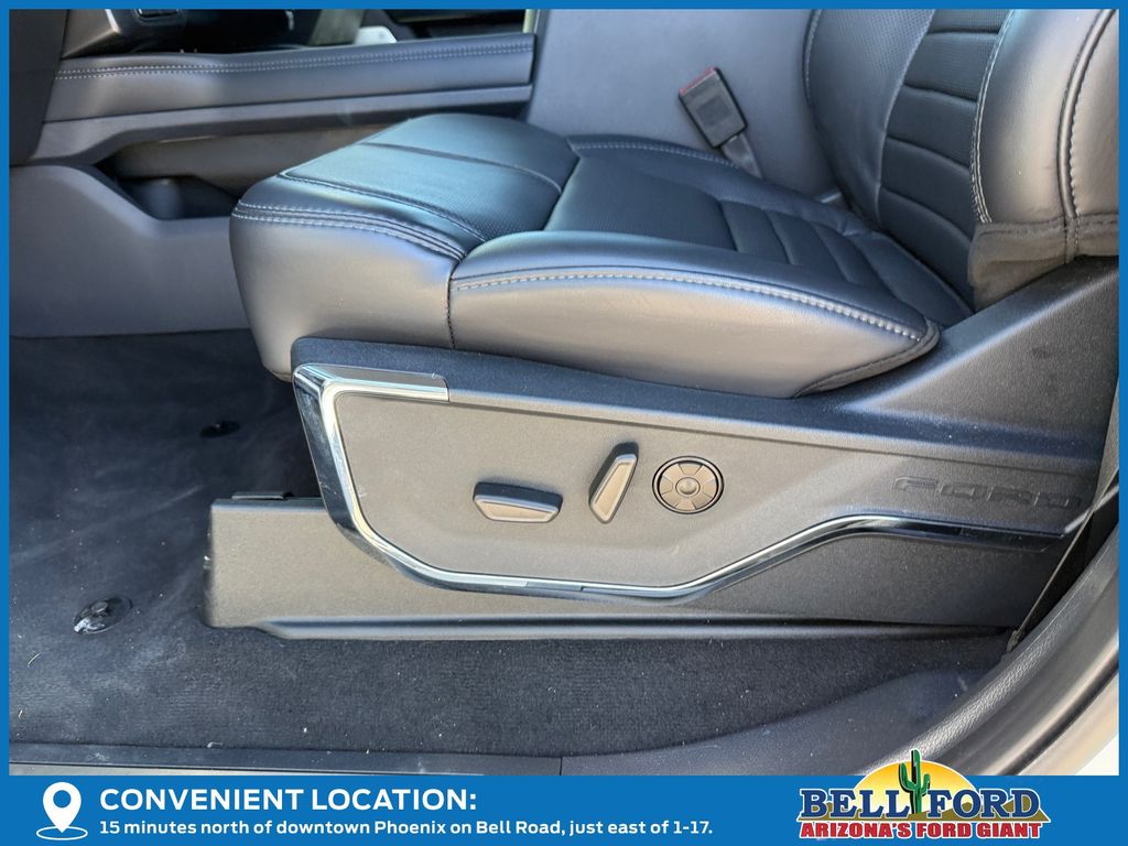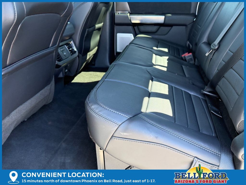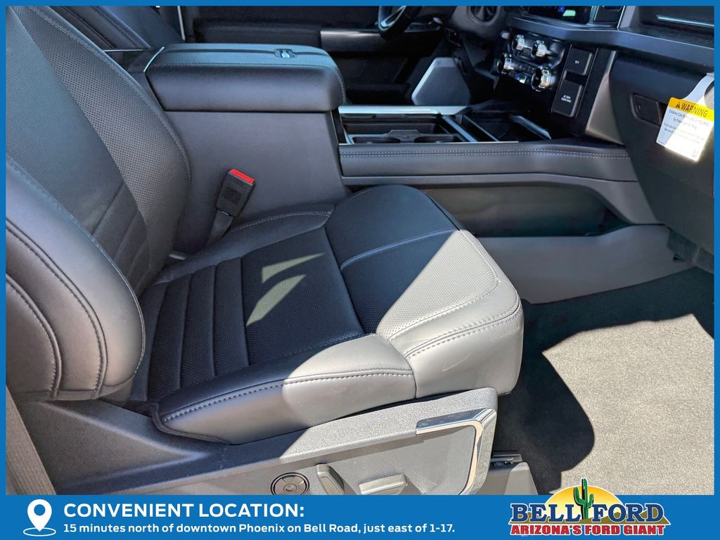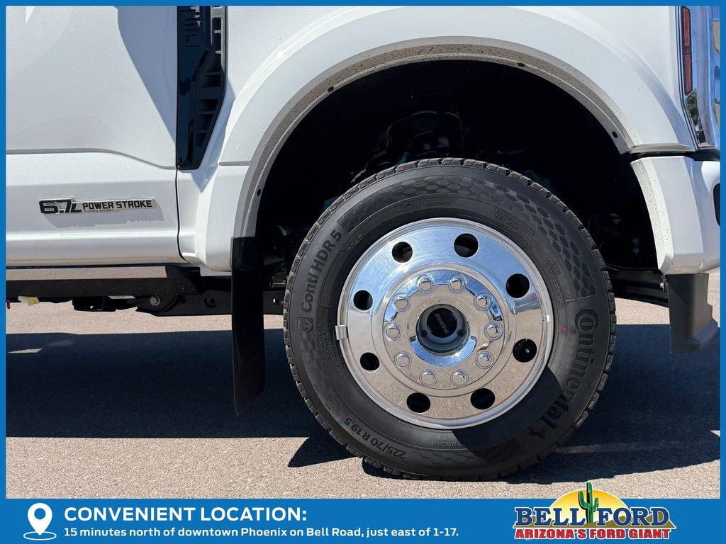 This Ford F-450SD is equipped with the following options: Camper Package (Rear Stabilizer Bar and Auxiliary Springs), Ford Connectivity Package (1-Year Included), Ford Connectivity Package (one-Time Purchase - 7 Years), FX4 Off-Road Package (Hill Descent Control, Off-Road Specifically Tuned Shock Absorbers, and Unique FX4 Off-Road Box Decal), GVWR: 14,000 Lb Payload Package, Internet access capable: 5G Modem - Ford Connectivity Package, Order Code 773A (19.5" Forged Polished Aluminum Wheels, Flow-Through Console, Limited Slip with 4.30 Axle Ratio, Radio: B&O Unleashed Sound System by Bang & Olufsen, and Unique Platinum Leather 40/Console/40 Seats), 4WD, 14 Speakers, 35K 5th Wheel Hitch Kit, 4-Wheel Disc Brakes, ABS brakes, Adjustable pedals, Air Conditioning, All-Weather Floor Mats, Alloy wheels, AM/FM radio: SiriusXM with 360L, Auto High-beam Headlights, Auto tilt-away steering wheel, Auto-dimming Rear-View mirror, Automatic temperature control, Brake assist, Bumpers: body-color, Compass, Delay-off headlights, Driver door bin, Driver vanity mirror, Dual front impact airbags, Dual front side impact airbags, Dual rear wheels, Electronic Stability Control, Emergency communication system: SYNC 4 911 Assist, Front anti-roll bar, Front Bucket Seats, Front Center Armrest, Front dual zone A/C, Front fog lights, Front reading lights, Fully automatic headlights, Garage door transmitter, Heads-Up Display, Heated door mirrors, Heated front seats, Heated rear seats, Heated steering wheel, Illuminated entry, Leather steering wheel, Low tire pressure warning, Memory seat, Navigation system: Connected Navigation, Outside temperature display, Overhead airbag, Overhead console, Panic alarm, Passenger door bin, Passenger vanity mirror, Pedal memory, Power door mirrors, Power driver seat, Power passenger seat, Power steering, Power windows, Rain sensing wipers, Rear anti-roll bar, Rear reading lights, Rear seat center armrest, Rear step bumper, Rear window defroster, Remote keyless entry, Retractable Bed Side-Step, SecuriCode Keyless Entry Keypad (driver's Side), Security system, SiriusXM with 360L, SiriusXM with 360L (3-Year Plan), Speed control, Split folding rear seat, Steering wheel memory, Steering wheel mounted A/C controls, Steering wheel mounted audio controls, SYNC 4 with Enhanced Voice Recognition, Tachometer, Telescoping steering wheel, Tilt steering wheel, Traction control, Trip computer, Turn signal indicator mirrors, Twin Panel Power Moonroof, Variably intermittent wipers, Vehicle Safe by Console Vault, and Ventilated front seats. Price includes dealer added accessories totaling $5,000.