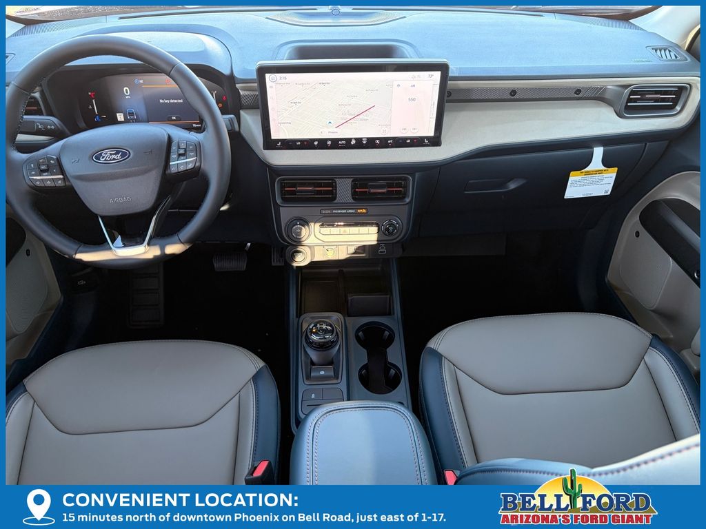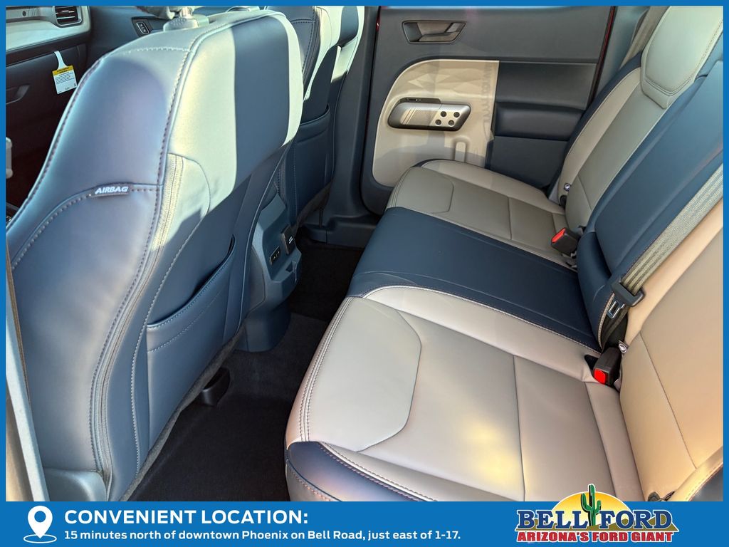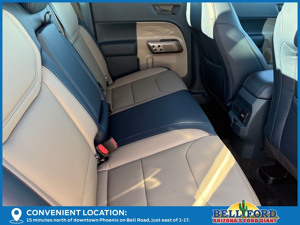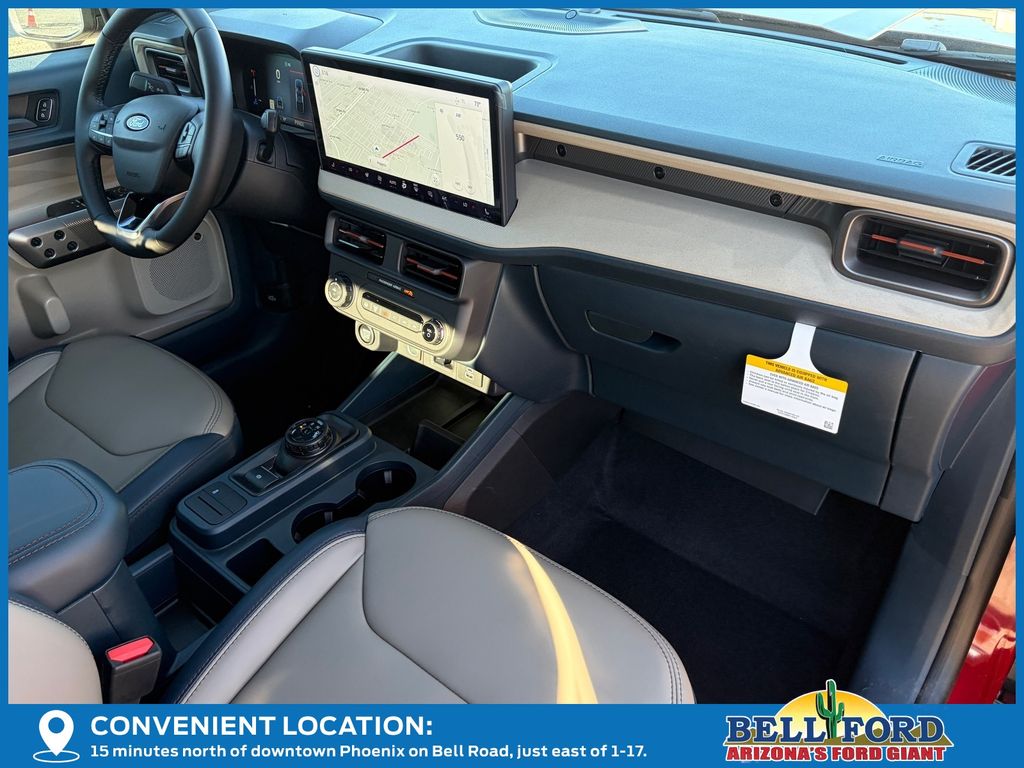 This Ford Maverick is equipped with the following options: Equipment Group 501A (2.91 Axle Ratio, ActiveX Trimmed Heated Front Bucket Seats, Radio: B&O Sound System by Bang and Olufsen, SiriusXM with 360L, SYNC 4 with Enhanced Voice Recognition, and Wheels: 19" Machined Aluminum Painted), Ford Connectivity Package (1-Year Included), Internet access capable: 5G Modem - Ford Connectivity Package, 2.5L I-4 Hybrid, 4-Wheel Disc Brakes, 8 Speakers, ABS brakes, Air Conditioning, Alloy wheels, AM/FM radio: SiriusXM with 360L, Apple CarPlay/Android Auto, Auto High-beam Headlights, Automatic temperature control, Brake assist, Bumpers: body-color, Compass, Delay-off headlights, Driver door bin, Driver vanity mirror, Dual front impact airbags, Dual front side impact airbags, Electronic Stability Control, Emergency communication system: SYNC 4 911 Assist, Exterior Parking Camera Rear, Four wheel independent suspension, Front anti-roll bar, Front Bucket Seats, Front Center Armrest, Front dual zone A/C, Front reading lights, Fully automatic headlights, Heated door mirrors, Heated front seats, Heated steering wheel, Illuminated entry, Knee airbag, Low tire pressure warning, Navigation system: Connected Navigation, Occupant sensing airbag, Outside temperature display, Overhead airbag, Overhead console, Panic alarm, Passenger door bin, Passenger vanity mirror, Power door mirrors, Power driver seat, Power steering, Power windows, Power-Sliding Rear Window, Radio data system, Rear anti-roll bar, Rear seat center armrest, Rear step bumper, Remote keyless entry, Security system, Speed control, Speed-sensing steering, Steering wheel mounted audio controls, Telescoping steering wheel, Tilt steering wheel, Traction control, and Trip computer.