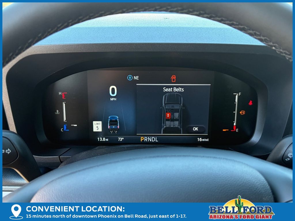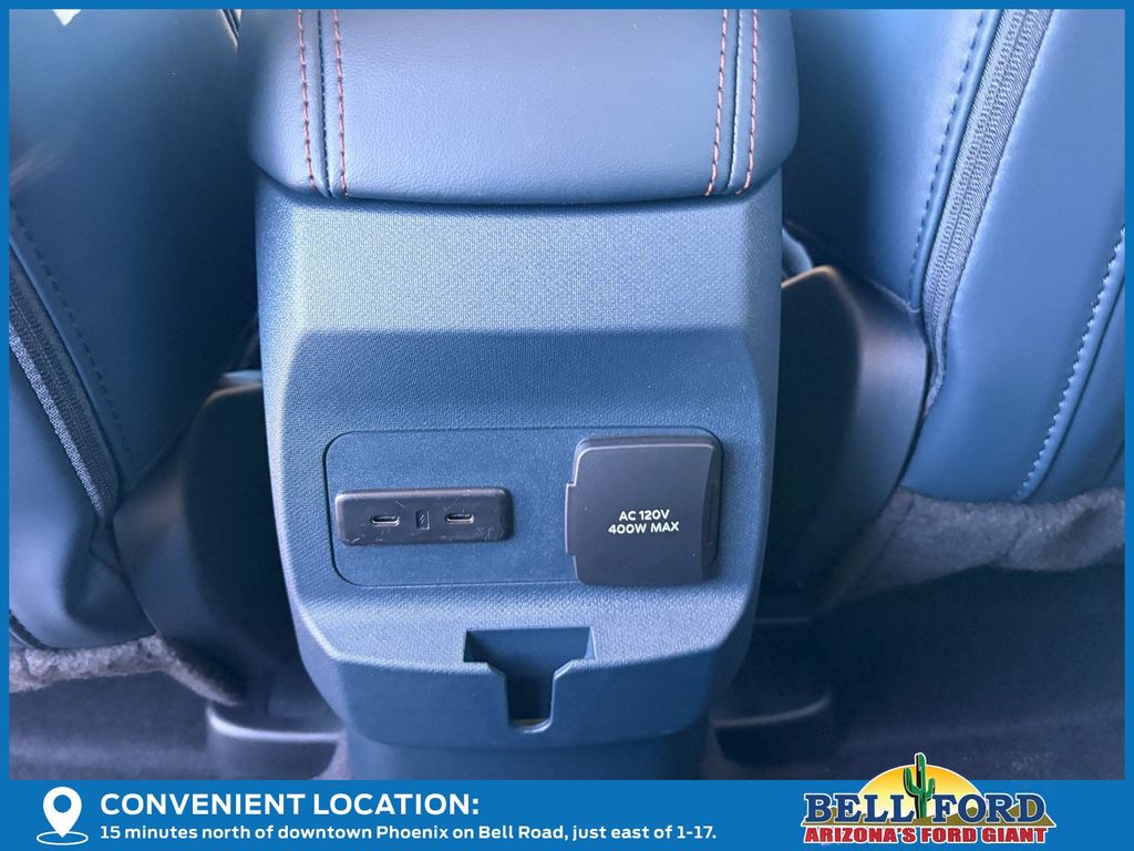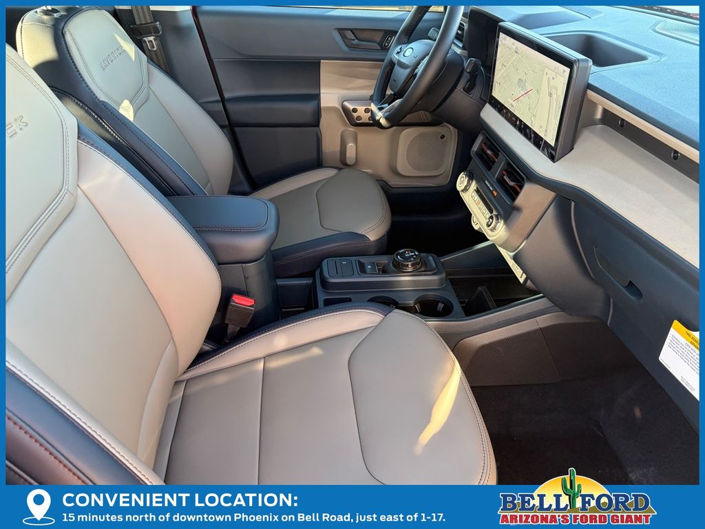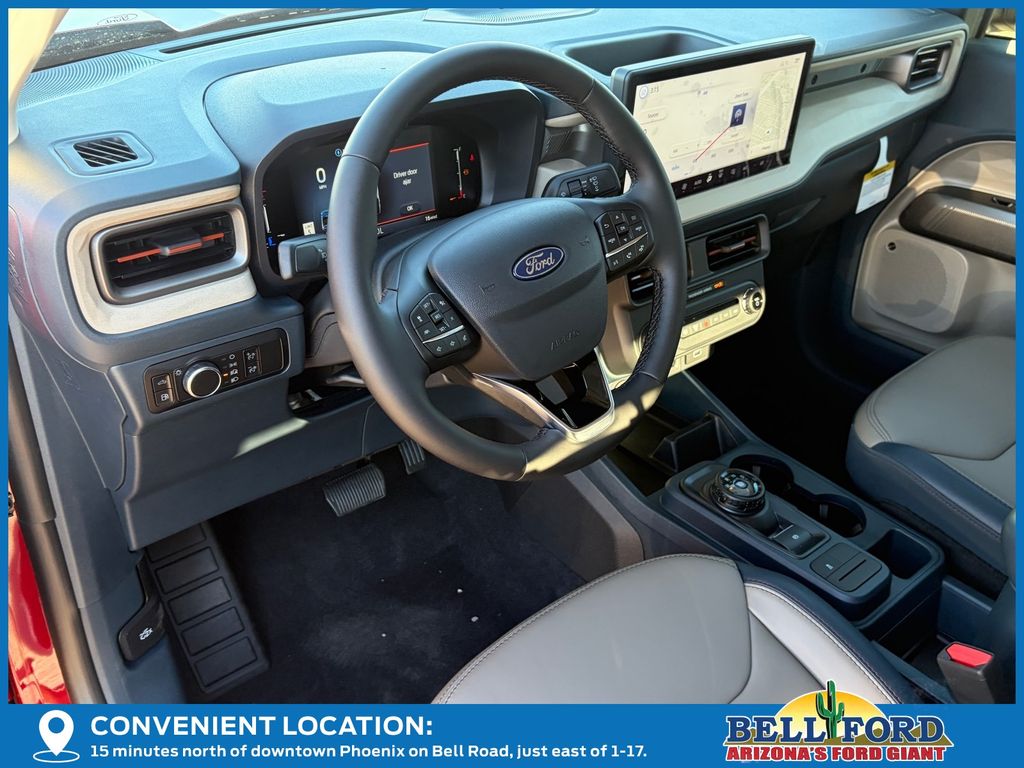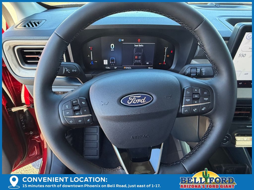 This Ford Maverick is equipped with the following options: Equipment Group 501A (2.91 Axle Ratio, ActiveX Trimmed Heated Front Bucket Seats, Radio: B&O Sound System by Bang and Olufsen, SiriusXM with 360L, SYNC 4 with Enhanced Voice Recognition, and Wheels: 19" Machined Aluminum Painted), Ford Connectivity Package (1-Year Included), Internet access capable: 5G Modem - Ford Connectivity Package, 2.5L I-4 Hybrid, 4-Wheel Disc Brakes, 8 Speakers, ABS brakes, Air Conditioning, Alloy wheels, AM/FM radio: SiriusXM with 360L, Apple CarPlay/Android Auto, Auto High-beam Headlights, Automatic temperature control, Brake assist, Bumpers: body-color, Compass, Delay-off headlights, Driver door bin, Driver vanity mirror, Dual front impact airbags, Dual front side impact airbags, Electronic Stability Control, Emergency communication system: SYNC 4 911 Assist, Exterior Parking Camera Rear, Four wheel independent suspension, Front anti-roll bar, Front Bucket Seats, Front Center Armrest, Front dual zone A/C, Front reading lights, Fully automatic headlights, Heated door mirrors, Heated front seats, Heated steering wheel, Illuminated entry, Knee airbag, Low tire pressure warning, Navigation system: Connected Navigation, Occupant sensing airbag, Outside temperature display, Overhead airbag, Overhead console, Panic alarm, Passenger door bin, Passenger vanity mirror, Power door mirrors, Power driver seat, Power steering, Power windows, Power-Sliding Rear Window, Radio data system, Rear anti-roll bar, Rear seat center armrest, Rear step bumper, Remote keyless entry, Security system, Speed control, Speed-sensing steering, Steering wheel mounted audio controls, Telescoping steering wheel, Tilt steering wheel, Traction control, and Trip computer.
