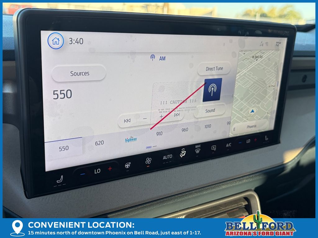 This Ford Maverick is equipped with the following options: 4K Tow Package (Trailer Brake Controller, Trailer Hitch (class III) 2" Receiver, and Upgraded Cooling Fan), Equipment Group 502A (ActiveX Trimmed Heated Front Bucket Seats, Radio: B&O Sound System by Bang and Olufsen, SiriusXM with 360L, SYNC 4 with Enhanced Voice Recognition, and Wheels: 19" Machined Aluminum Painted), Ford Connectivity Package (1-Year Included), Internet access capable: 5G Modem - Ford Connectivity Package, 2.91 Axle Ratio, 4-Wheel Disc Brakes, 8 Speakers, ABS brakes, Air Conditioning, Alloy wheels, AM/FM radio: SiriusXM with 360L, Apple CarPlay/Android Auto, Auto High-beam Headlights, Automatic temperature control, Brake assist, Bumpers: body-color, Compass, Delay-off headlights, Driver door bin, Driver vanity mirror, Dual front impact airbags, Dual front side impact airbags, Electronic Stability Control, Emergency communication system: SYNC 4 911 Assist, Exterior Parking Camera Rear, Four wheel independent suspension, Front anti-roll bar, Front Bucket Seats, Front Center Armrest, Front dual zone A/C, Front reading lights, Fully automatic headlights, Heated door mirrors, Heated front seats, Heated steering wheel, Illuminated entry, Knee airbag, Low tire pressure warning, Navigation system: Connected Navigation, Occupant sensing airbag, Outside temperature display, Overhead airbag, Overhead console, Panic alarm, Passenger door bin, Passenger vanity mirror, Power door mirrors, Power driver seat, Power steering, Power windows, Power-Sliding Rear Window, Radio data system, Rear anti-roll bar, Rear seat center armrest, Rear step bumper, Remote keyless entry, Security system, Speed control, Speed-sensing steering, Steering wheel mounted audio controls, Telescoping steering wheel, Tilt steering wheel, Traction control, and Trip computer.