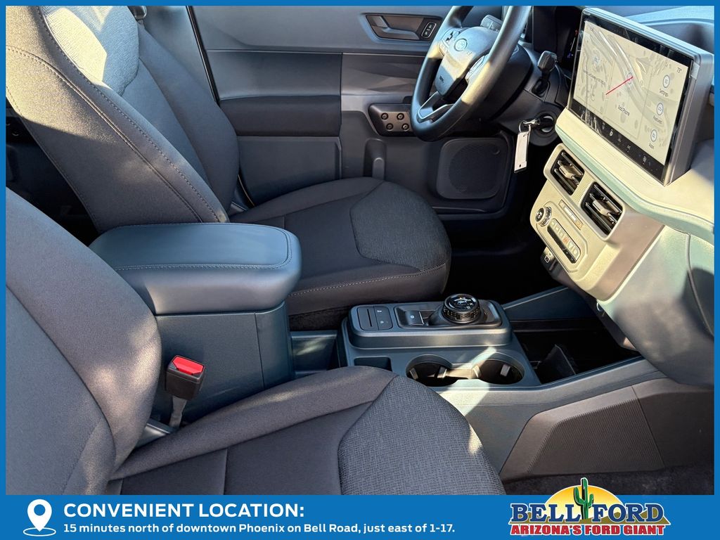 Equipment Group 102A, Ford Connectivity Package (1-Year Included), Internet access capable: 5G Modem - Ford Connectivity Package, 2.91 Axle Ratio, 2K Trailer Hitch Receiver w/4-Pin Connector, 4-Wheel Disc Brakes, 6 Speakers, ABS brakes, Air Conditioning, AM/FM radio: SiriusXM with 360L, Apple CarPlay/Android Auto, Auto High Beams, Auto High-beam Headlights, Automatic temperature control, Brake assist, Bumpers: body-color, Compass, Delay-off headlights, Driver door bin, Driver vanity mirror, Dual front impact airbags, Dual front side impact airbags, Electronic Stability Control, Emergency communication system: SYNC 4 911 Assist, Exterior Parking Camera Rear, Four wheel independent suspension, Front anti-roll bar, Front Bucket Seats, Front Center Armrest, Front Cloth Bucket Seats, Front reading lights, Fully automatic headlights, Illuminated entry, Intersection Assist, Knee airbag, Lane-Keeping System, Low tire pressure warning, Occupant sensing airbag, Outside temperature display, Overhead airbag, Overhead console, Panic alarm, Passenger door bin, Passenger vanity mirror, Power steering, Power windows, Pre-Collision Assist w/Automatic Emergency Braking, Radio data system, Radio: AM/FM Stereo w/6 Speakers, Rear anti-roll bar, Rear step bumper, Rear-View Camera, Remote keyless entry, SiriusXM w/360L, Speed control, Speed-sensing steering, Steering wheel mounted audio controls, SYNC 4 w/Enhanced Voice Recognition, Telescoping steering wheel, Tilt steering wheel, Traction control, Trip computer, and Wheels: 17" Steel w/Sparkle Silver Painted Cover.