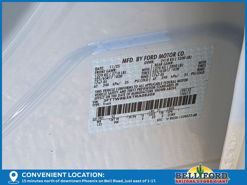 - VIN : 3FTTW8B3XTRA08208