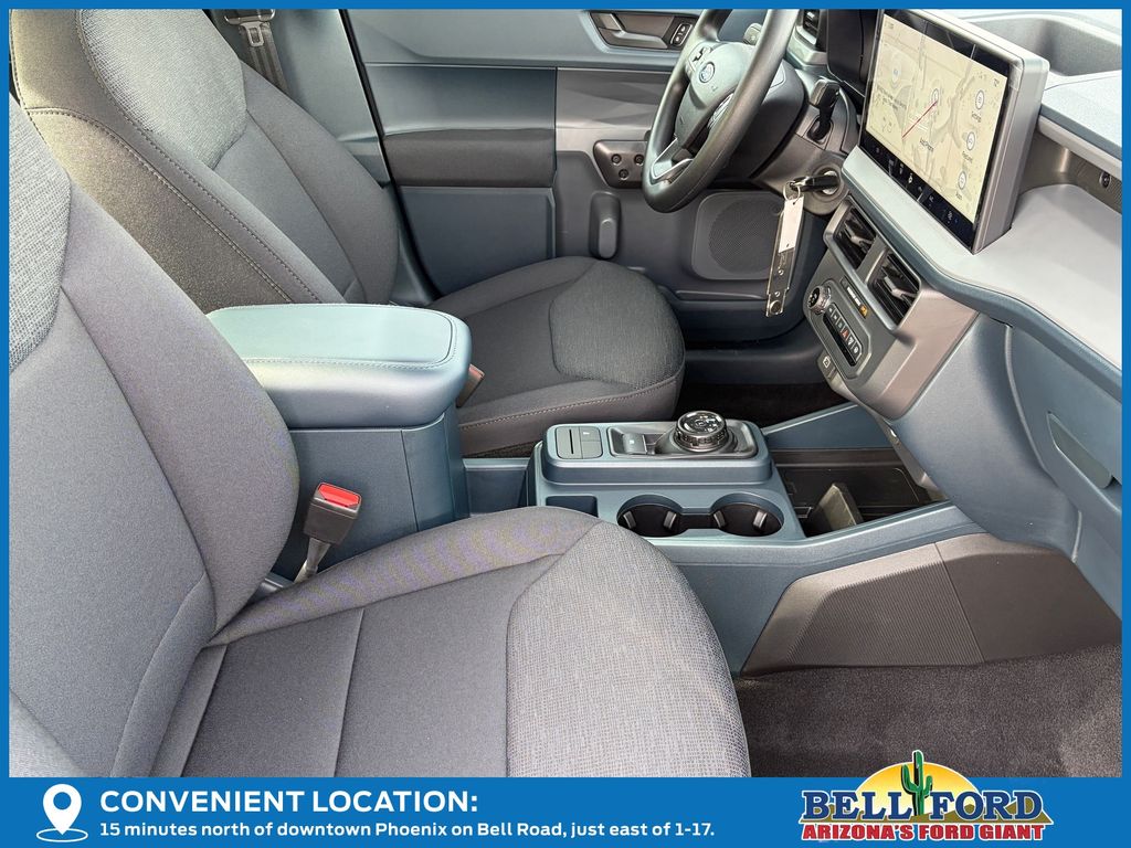 This Ford Maverick is equipped with the following options: Equipment Group 100A (Front Cloth Bucket Seats, Radio: AM/FM Stereo with 6 Speakers, SiriusXM with 360L, SYNC 4 with Enhanced Voice Recognition, and Wheels: 17" Steel with Sparkle Silver Painted Cover), Ford Connectivity Package (1-Year Included), Internet access capable: 5G Modem - Ford Connectivity Package, 2.5L I-4 Hybrid, 2.91 Axle Ratio, 2K Trailer Hitch Receiver with 4-Pin Connector, 4-Wheel Disc Brakes, 6 Speakers, ABS brakes, Air Conditioning, AM/FM radio: SiriusXM with 360L, Apple CarPlay/Android Auto, Auto High Beams, Auto High-beam Headlights, Automatic temperature control, Brake assist, Bumpers: body-color, Compass, Delay-off headlights, Driver door bin, Driver vanity mirror, Dual front impact airbags, Dual front side impact airbags, Electronic Stability Control, Emergency communication system: SYNC 4 911 Assist, Exterior Parking Camera Rear, Front anti-roll bar, Front Bucket Seats, Front Center Armrest, Front reading lights, Front wheel independent suspension, Fully automatic headlights, Illuminated entry, Intersection Assist, Knee airbag, Lane-Keeping System, Low tire pressure warning, Occupant sensing airbag, Outside temperature display, Overhead airbag, Overhead console, Panic alarm, Passenger door bin, Passenger vanity mirror, Power steering, Power windows, Pre-Collision Assist with Automatic Emergency Braking, Radio data system, Rear anti-roll bar, Rear step bumper, Rear-View Camera, Remote keyless entry, Speed control, Speed-sensing steering, Steering wheel mounted audio controls, Telescoping steering wheel, Tilt steering wheel, Traction control, and Trip computer.