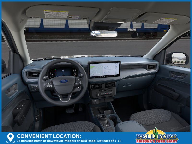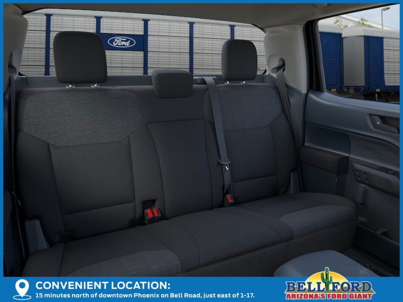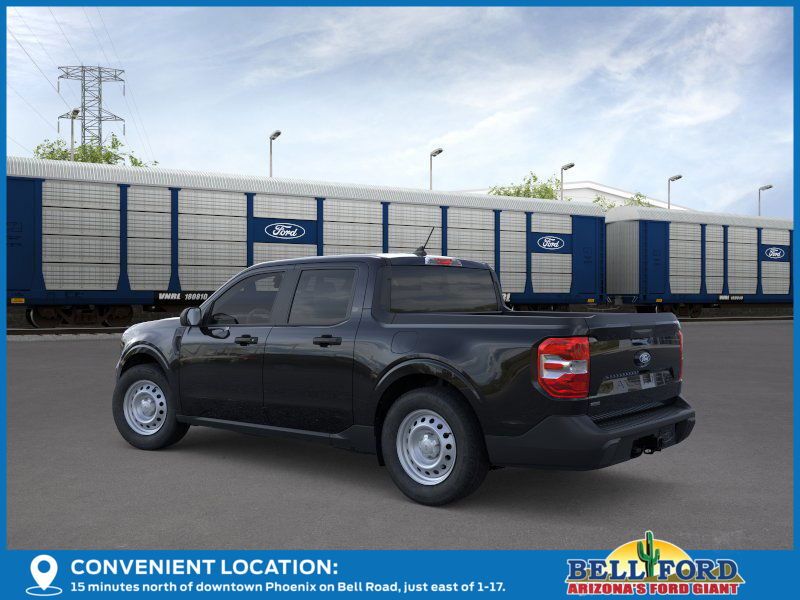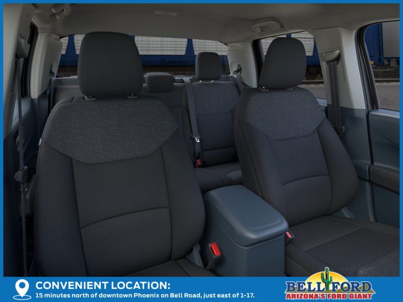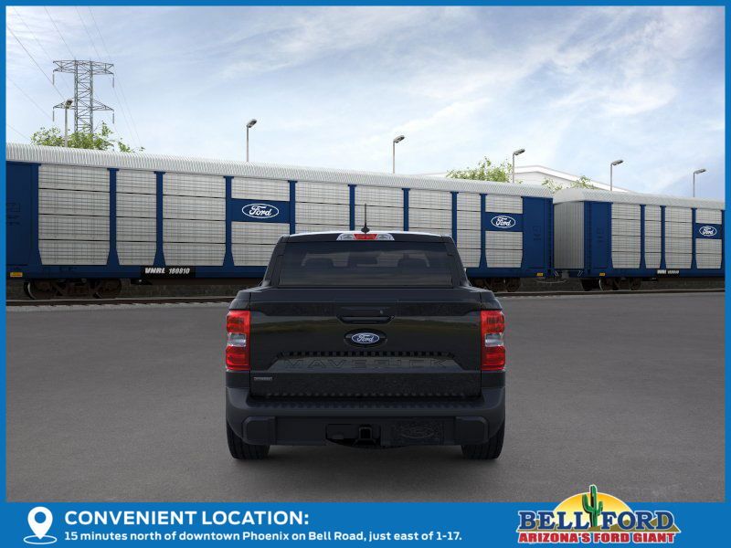 This Ford Maverick is equipped with the following options: Equipment Group 101A (2.91 Axle Ratio, Front Cloth Bucket Seats, Radio: AM/FM Stereo with 6 Speakers, SiriusXM with 360L, SYNC 4 with Enhanced Voice Recognition, and Wheels: 17" Steel with Sparkle Silver Painted Cover), Ford Connectivity Package (1-Year Included), Internet access capable: 5G Modem - Ford Connectivity Package, 2.5L I-4 Hybrid, 2K Trailer Hitch Receiver with 4-Pin Connector, 4-Wheel Disc Brakes, 6 Speakers, ABS brakes, Air Conditioning, AM/FM radio: SiriusXM with 360L, Apple CarPlay/Android Auto, Auto High Beams, Auto High-beam Headlights, Automatic temperature control, Brake assist, Bumpers: body-color, Compass, Delay-off headlights, Driver door bin, Driver vanity mirror, Dual front impact airbags, Dual front side impact airbags, Electronic Stability Control, Emergency communication system: SYNC 4 911 Assist, Exterior Parking Camera Rear, Four wheel independent suspension, Front anti-roll bar, Front Bucket Seats, Front Center Armrest, Front reading lights, Fully automatic headlights, Illuminated entry, Intersection Assist, Knee airbag, Lane-Keeping System, Low tire pressure warning, Occupant sensing airbag, Outside temperature display, Overhead airbag, Overhead console, Panic alarm, Passenger door bin, Passenger vanity mirror, Power steering, Power windows, Pre-Collision Assist with Automatic Emergency Braking, Radio data system, Rear anti-roll bar, Rear step bumper, Rear-View Camera, Remote keyless entry, Speed control, Speed-sensing steering, Steering wheel mounted audio controls, Telescoping steering wheel, Tilt steering wheel, Traction control, and Trip computer.
