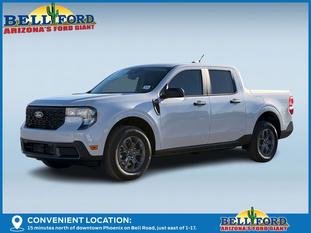This Ford Maverick is equipped with the following options: Equipment Group 302A (Radio: AM/FM Stereo with 6 Speakers, SiriusXM with 360L, SYNC 4 with Enhanced Voice Recognition, Unique Cloth Front Bucket Seats, and Wheels: 17" Carbonized Gray Painted Aluminum), Ford Connectivity Package (1-Year Included), Internet access capable: 5G Modem - Ford Connectivity Package, 2.91 Axle Ratio, 4-Wheel Disc Brakes, 6 Speakers, ABS brakes, Air Conditioning, Alloy wheels, AM/FM radio: SiriusXM with 360L, Apple CarPlay/Android Auto, Auto High Beams, Auto High-beam Headlights, Automatic temperature control, Brake assist, Bumpers: body-color, Compass, Delay-off headlights, Driver door bin, Driver vanity mirror, Dual front impact airbags, Dual front side impact airbags, Electronic Stability Control, Emergency communication system: SYNC 4 911 Assist, Exterior Parking Camera Rear, Four wheel independent suspension, Front anti-roll bar, Front Bucket Seats, Front Center Armrest, Front reading lights, Fully automatic headlights, Illuminated entry, Intersection Assist, Knee airbag, Lane-Keeping System, Low tire pressure warning, Occupant sensing airbag, Outside temperature display, Overhead airbag, Overhead console, Panic alarm, Passenger door bin, Passenger vanity mirror, Power door mirrors, Power steering, Power windows, Pre-Collision Assist with Automatic Emergency Braking, Radio data system, Rear anti-roll bar, Rear seat center armrest, Rear step bumper, Rear-View Camera, Remote keyless entry, Security system, Speed control, Speed-sensing steering, Steering wheel mounted audio controls, Telescoping steering wheel, Tilt steering wheel, Traction control, and Trip computer.