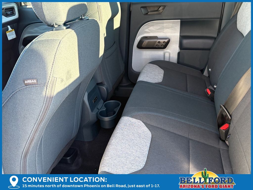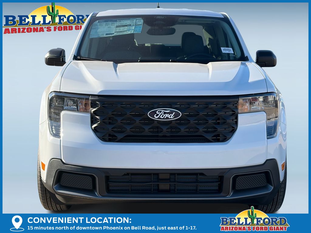 This Ford Maverick is equipped with the following options: Equipment Group 302A (Radio: AM/FM Stereo with 6 Speakers, SiriusXM with 360L, SYNC 4 with Enhanced Voice Recognition, Unique Cloth Front Bucket Seats, and Wheels: 17" Carbonized Gray Painted Aluminum), Ford Connectivity Package (1-Year Included), Internet access capable: 5G Modem - Ford Connectivity Package, 2.91 Axle Ratio, 4-Wheel Disc Brakes, 6 Speakers, ABS brakes, Air Conditioning, Alloy wheels, AM/FM radio: SiriusXM with 360L, Apple CarPlay/Android Auto, Auto High Beams, Auto High-beam Headlights, Automatic temperature control, Brake assist, Bumpers: body-color, Compass, Delay-off headlights, Driver door bin, Driver vanity mirror, Dual front impact airbags, Dual front side impact airbags, Electronic Stability Control, Emergency communication system: SYNC 4 911 Assist, Exterior Parking Camera Rear, Four wheel independent suspension, Front anti-roll bar, Front Bucket Seats, Front Center Armrest, Front reading lights, Fully automatic headlights, Illuminated entry, Intersection Assist, Knee airbag, Lane-Keeping System, Low tire pressure warning, Occupant sensing airbag, Outside temperature display, Overhead airbag, Overhead console, Panic alarm, Passenger door bin, Passenger vanity mirror, Power door mirrors, Power steering, Power windows, Pre-Collision Assist with Automatic Emergency Braking, Radio data system, Rear anti-roll bar, Rear seat center armrest, Rear step bumper, Rear-View Camera, Remote keyless entry, Security system, Speed control, Speed-sensing steering, Steering wheel mounted audio controls, Telescoping steering wheel, Tilt steering wheel, Traction control, and Trip computer.