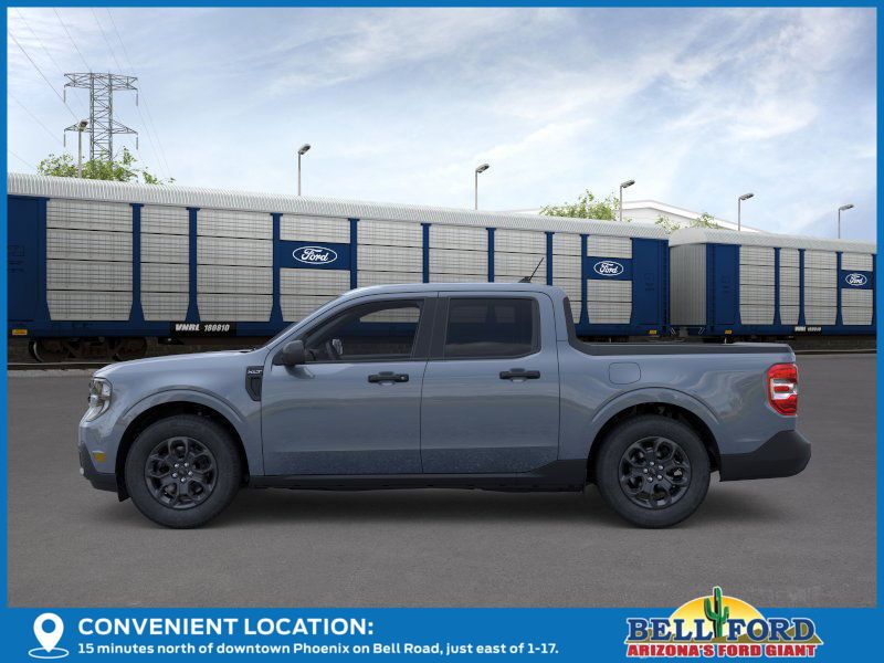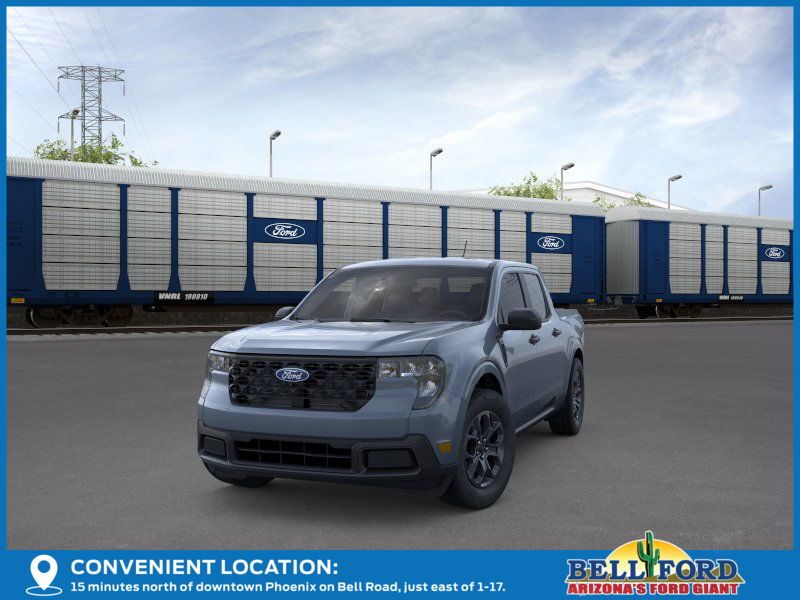 This Ford Maverick is equipped with the following options: Equipment Group 302A (Radio: AM/FM Stereo with 6 Speakers, SiriusXM with 360L, SYNC 4 with Enhanced Voice Recognition, Unique Cloth Front Bucket Seats, and Wheels: 17" Carbonized Gray Painted Aluminum), Ford Connectivity Package (1-Year Included), Internet access capable: 5G Modem - Ford Connectivity Package, 2.91 Axle Ratio, 4-Wheel Disc Brakes, 6 Speakers, ABS brakes, Air Conditioning, Alloy wheels, AM/FM radio: SiriusXM with 360L, Apple CarPlay/Android Auto, Auto High Beams, Auto High-beam Headlights, Automatic temperature control, Brake assist, Bumpers: body-color, Compass, Delay-off headlights, Driver door bin, Driver vanity mirror, Dual front impact airbags, Dual front side impact airbags, Electronic Stability Control, Emergency communication system: SYNC 4 911 Assist, Exterior Parking Camera Rear, Four wheel independent suspension, Front anti-roll bar, Front Bucket Seats, Front Center Armrest, Front reading lights, Fully automatic headlights, Illuminated entry, Intersection Assist, Knee airbag, Lane-Keeping System, Low tire pressure warning, Occupant sensing airbag, Outside temperature display, Overhead airbag, Overhead console, Panic alarm, Passenger door bin, Passenger vanity mirror, Power door mirrors, Power steering, Power windows, Pre-Collision Assist with Automatic Emergency Braking, Radio data system, Rear anti-roll bar, Rear seat center armrest, Rear step bumper, Rear-View Camera, Remote keyless entry, Security system, Speed control, Speed-sensing steering, Steering wheel mounted audio controls, Telescoping steering wheel, Tilt steering wheel, Traction control, and Trip computer.