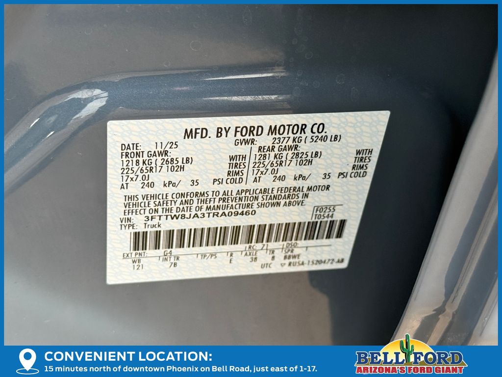 - VIN : 3FTTW8JA3TRA09460