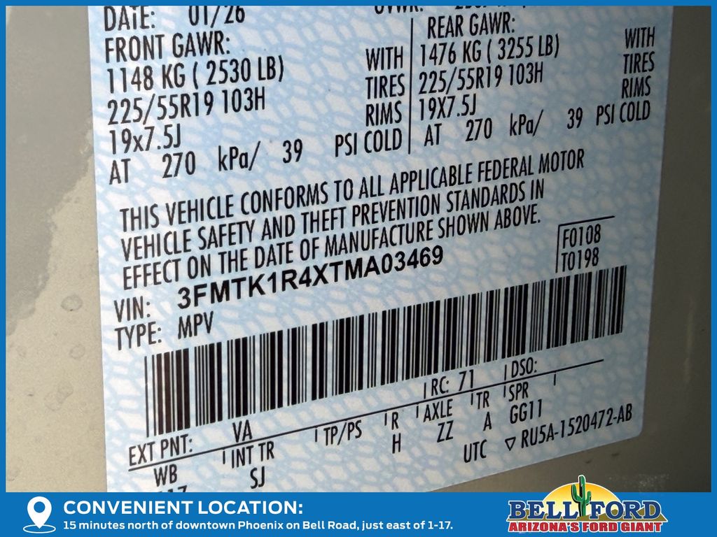 - VIN : 3FMTK1R4XTMA03469