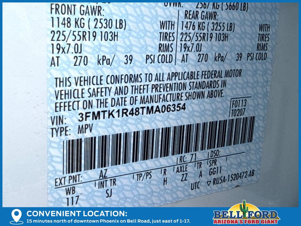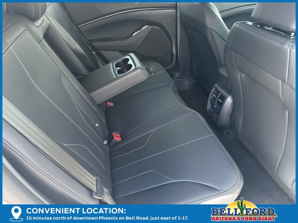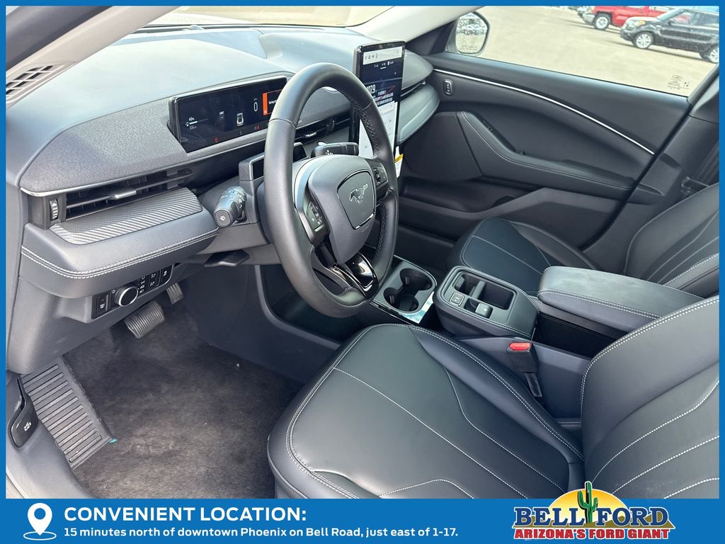 This Ford Mustang Mach-E is equipped with the following options: Equipment Group 100A Standard Package (ActiveX Bucket Seats, AM/FM Stereo, SiriusXM with 360L, SYNC 4A with Enhanced Voice Recognition, and Wheels: 19" Machined-Face Aluminum), Technology Package (BlueCruise (equipment + 1 Year + 90-Day Plan) and Ford Co-Pilot360 Active 2.0), 4-Wheel Disc Brakes, 6 Speakers, ABS brakes, Air Conditioning, Alloy wheels, AM/FM radio: SiriusXM with 360L, Apple CarPlay/Android Auto, Auto High-beam Headlights, Auto-dimming Rear-View mirror, Automatic temperature control, Brake assist, Bumpers: body-color, Compass, Delay-off headlights, Driver door bin, Driver vanity mirror, Dual front impact airbags, Dual front side impact airbags, Electronic Stability Control, Emergency communication system: 911 Assist, Exterior Parking Camera Rear, Four wheel independent suspension, Front anti-roll bar, Front Bucket Seats, Front Center Armrest, Front dual zone A/C, Front reading lights, Fully automatic headlights, Heated door mirrors, Illuminated entry, Knee airbag, Low tire pressure warning, Mobile Power Cord (120V/240V), Navigation system: Connected Navigation, Occupant sensing airbag, Outside temperature display, Overhead airbag, Overhead console, Panic alarm, Passenger door bin, Passenger vanity mirror, Power door mirrors, Power driver seat, Power steering, Power windows, Radio data system, Rain sensing wipers, Rear anti-roll bar, Rear seat center armrest, Rear side impact airbag, Rear window defroster, Rear window wiper, Remote keyless entry, Security system, Speed control, Speed-sensing steering, Speed-Sensitive Wipers, Split folding rear seat, Spoiler, Steering wheel mounted audio controls, Telescoping steering wheel, Tilt steering wheel, Tire Inflator and Sealant Kit, Traction control, Trip computer, Turn signal indicator mirrors, and Variably intermittent wipers.